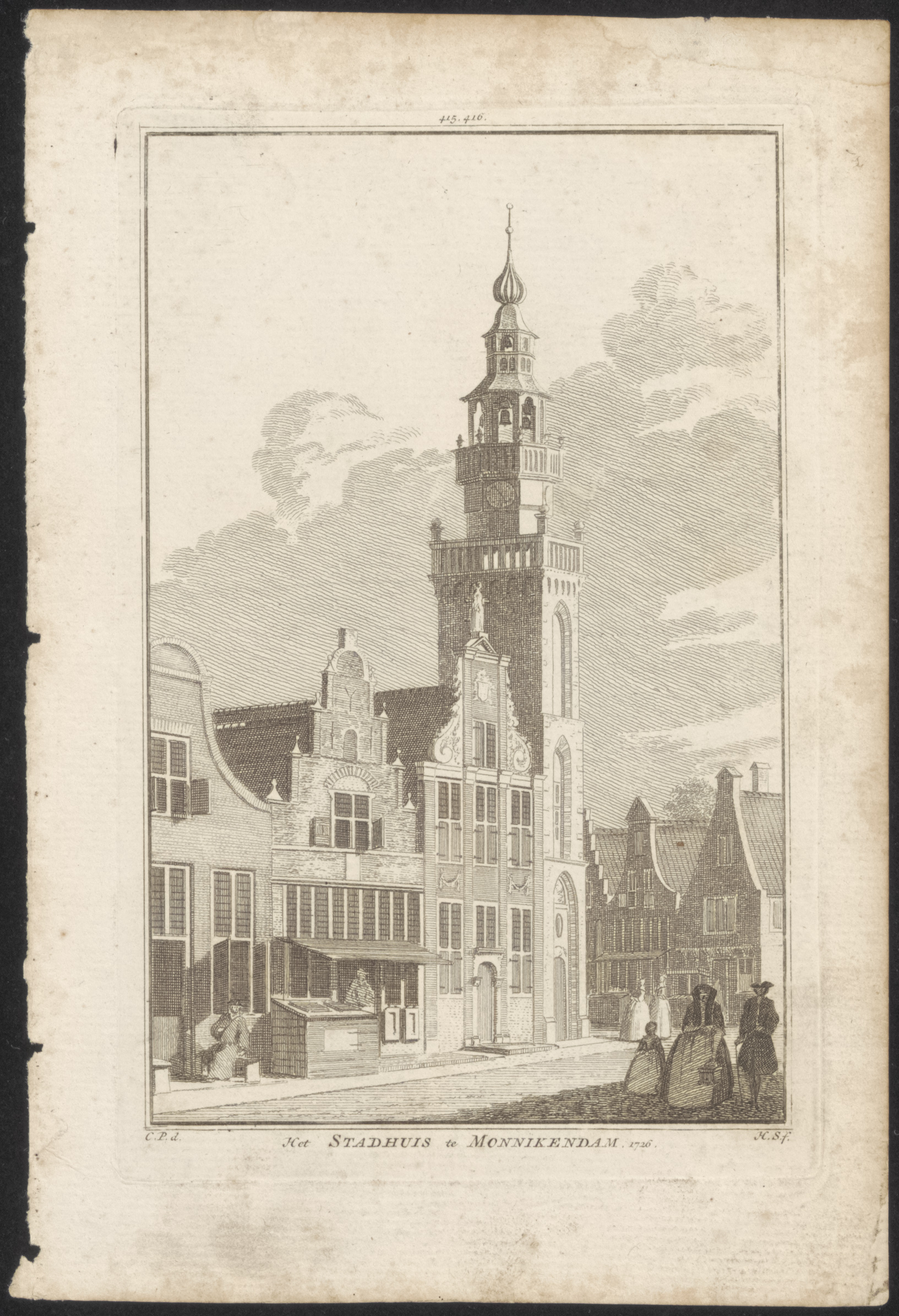 Het stadhuis en de waag te Hoorn. Ooster kerk te Hoorn