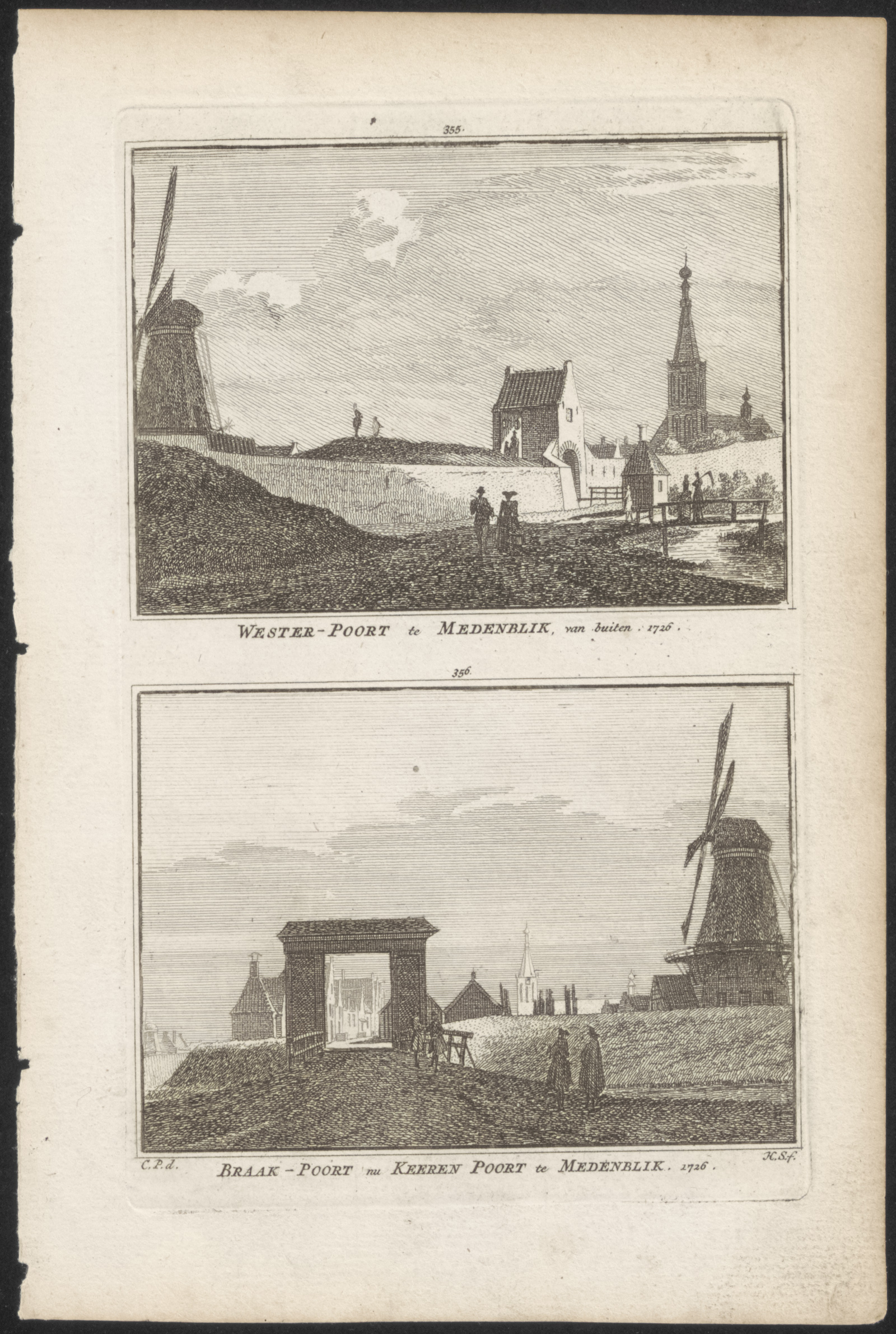 Domburg en Blaauwe-poort te Enkhuizen 1726.