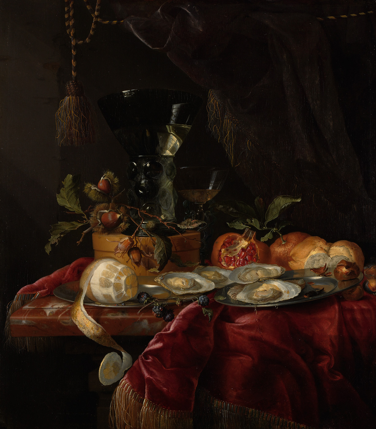 Stilleven met vruchten, oesters en roemer
