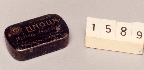 Ovaal, zwart doosje met goudkleurige letters voor LI...