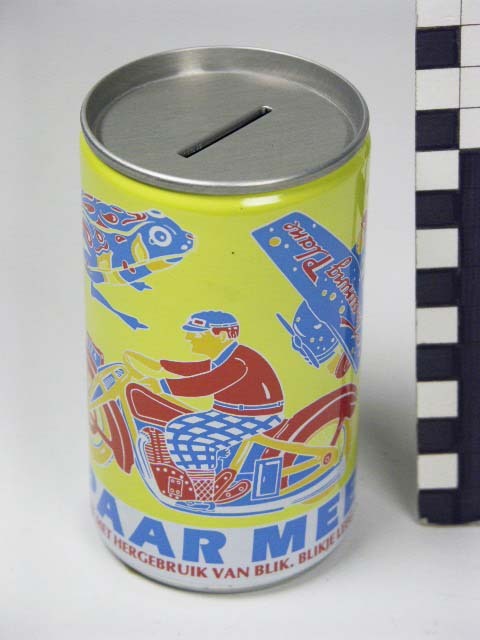 Veelkleurige spaarbus, aangeboden door het Speelgoed...