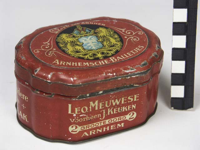 Rode trommel voor Arnhemsche balletjes van Leo Meuwese