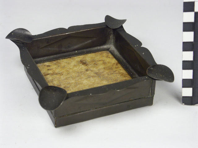 Zilverkleurige speldendoos met decoratie van reliefl...