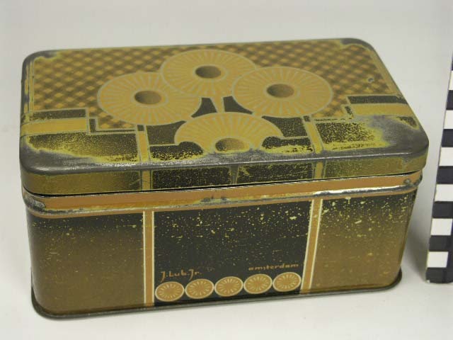 Rechthoekig,goudkleurig doosje voor ALEX MEIJERS THEE