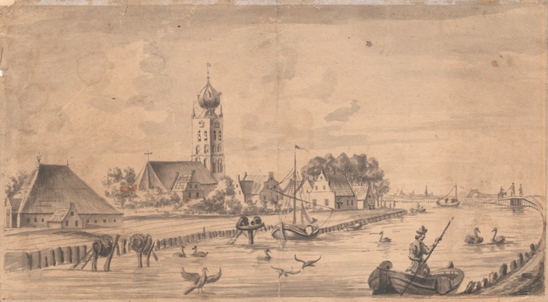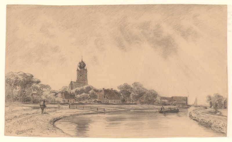 Gezicht op de kerk te Dronrijp vanaf de Haven
