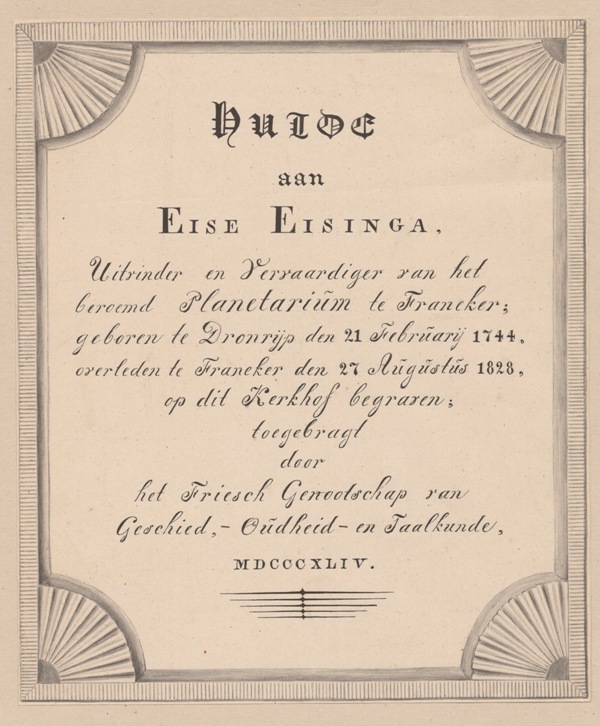 Gedenksteen voor Eise Eisinga te Dronrijp