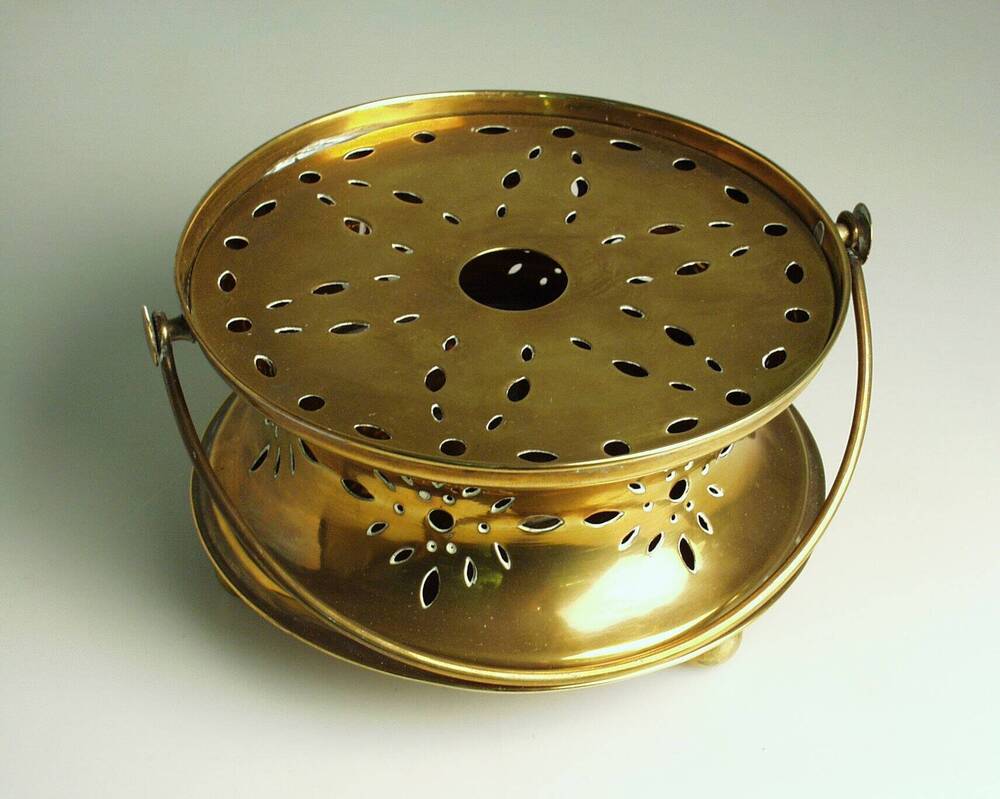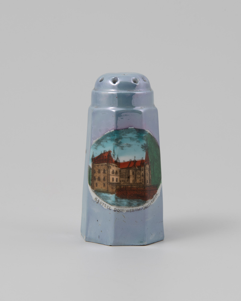 Geëmailleerde zoutstrooier met voorstelling van kast...