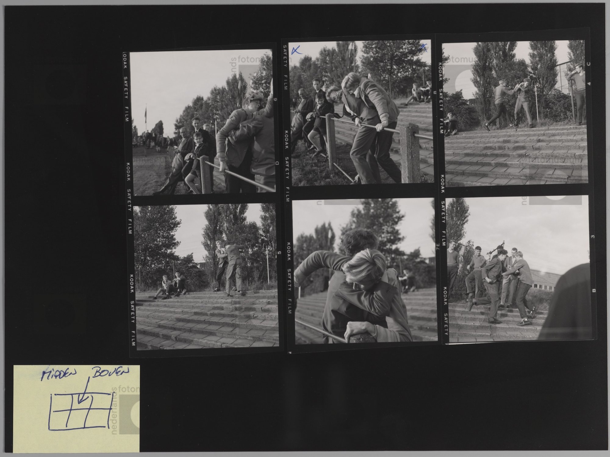 Amsterdam. Vechtende jongens langs het voetbalveld