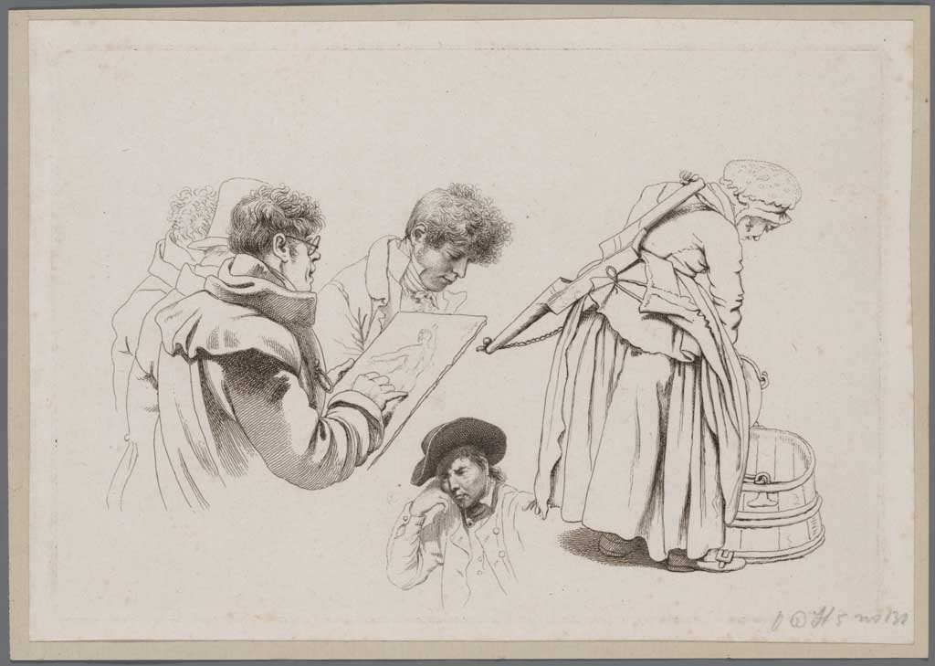 Studieblad met 6 figuren van mannen