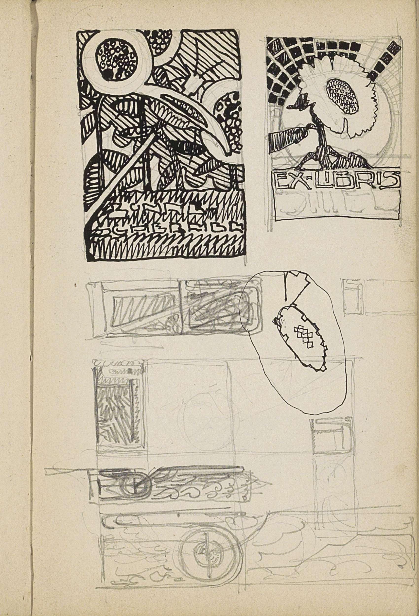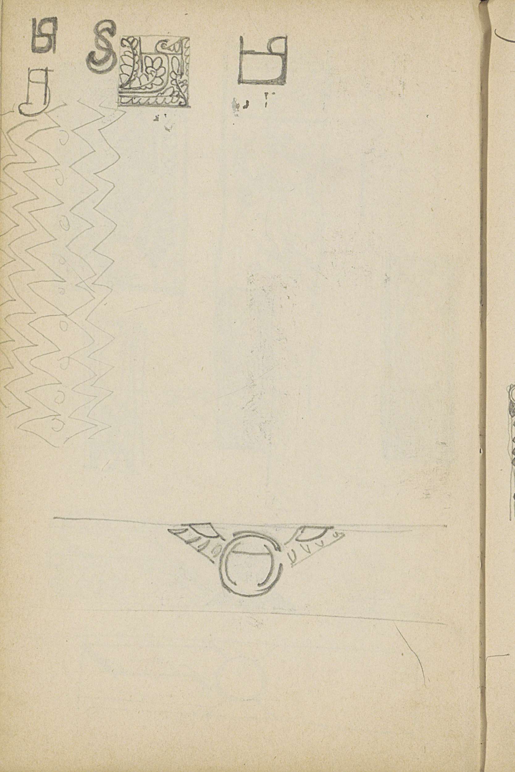 Ornamenten met bladmotieven, bloemen en letterontwerpen