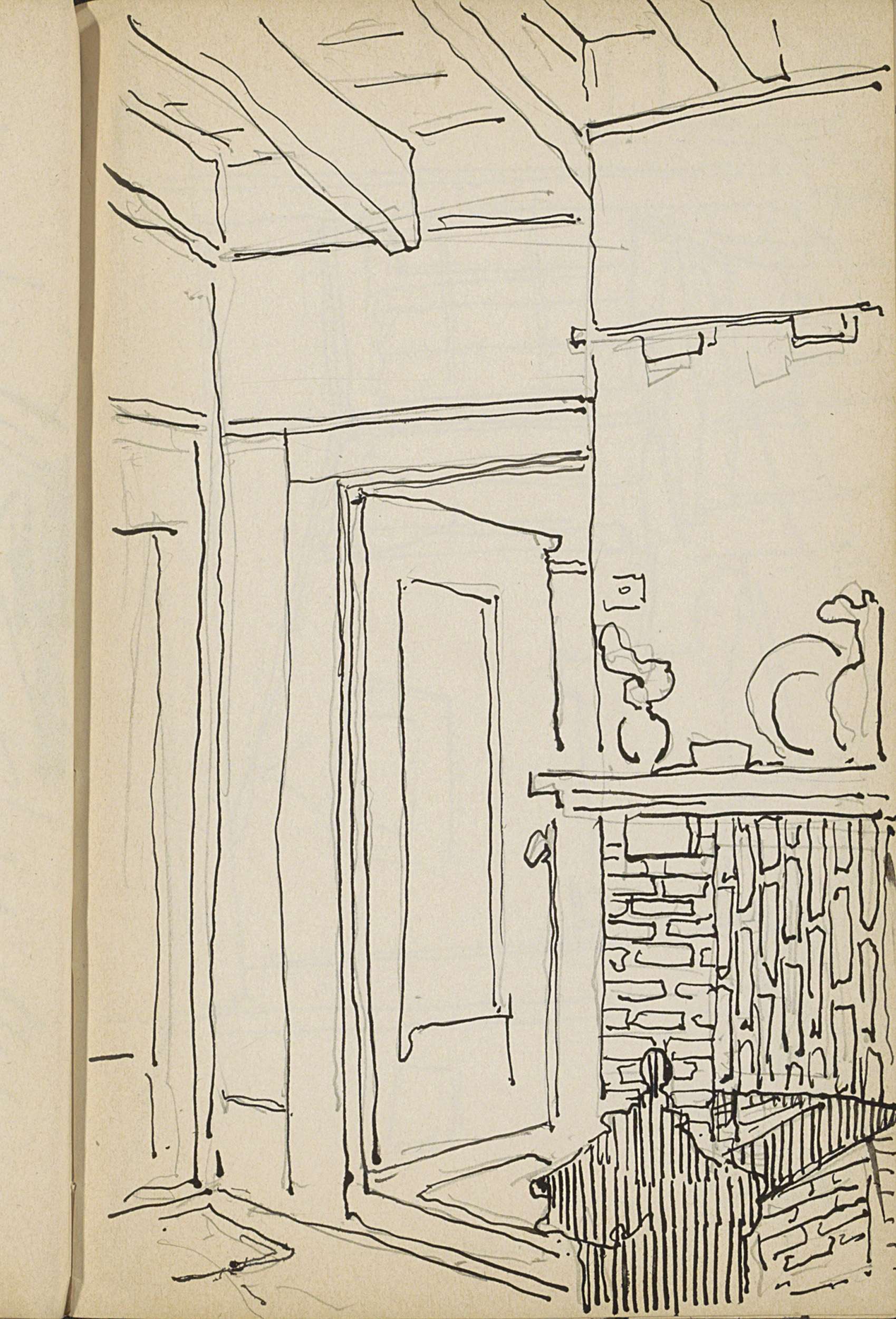 Deur naast een schoorsteenmantel