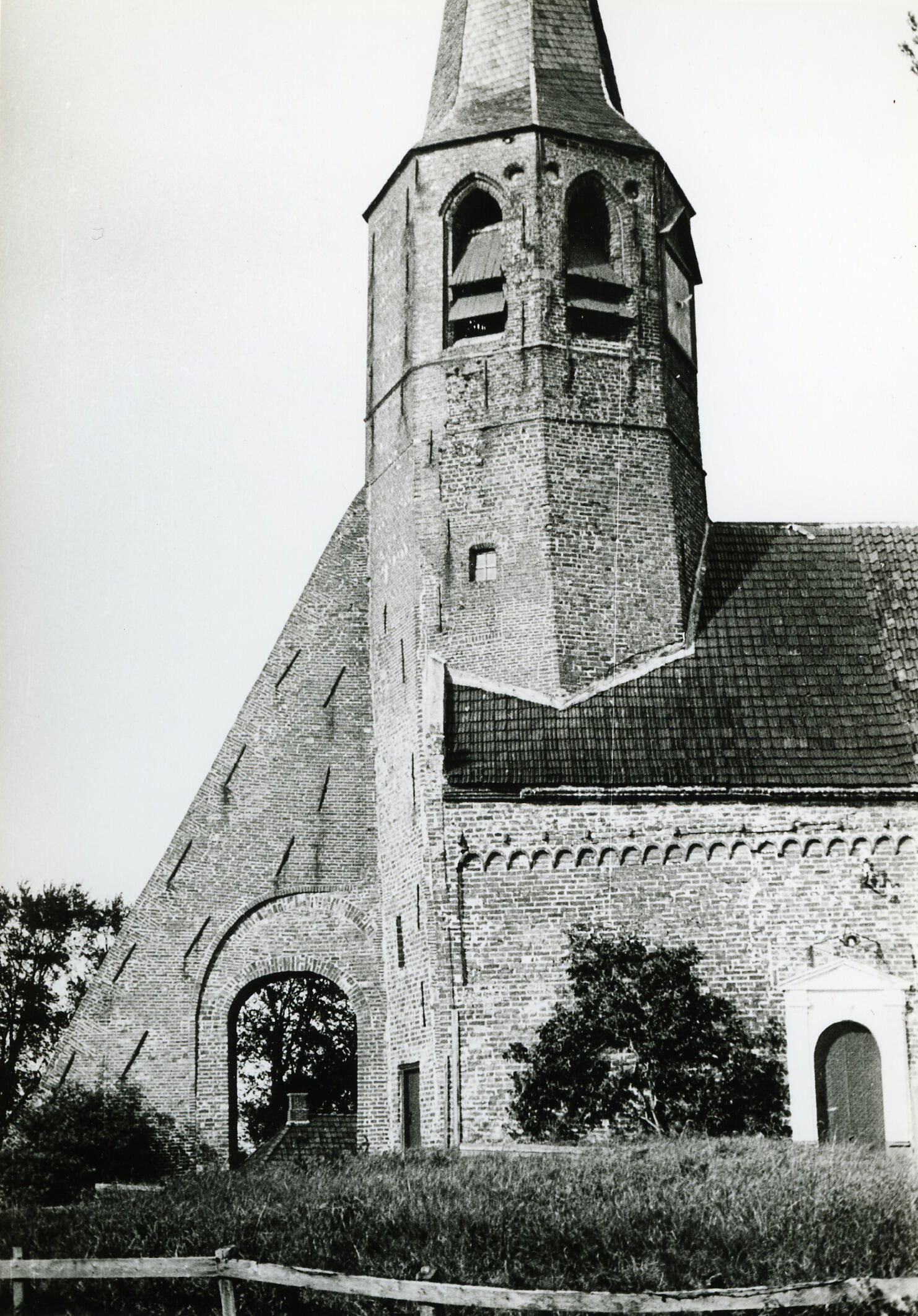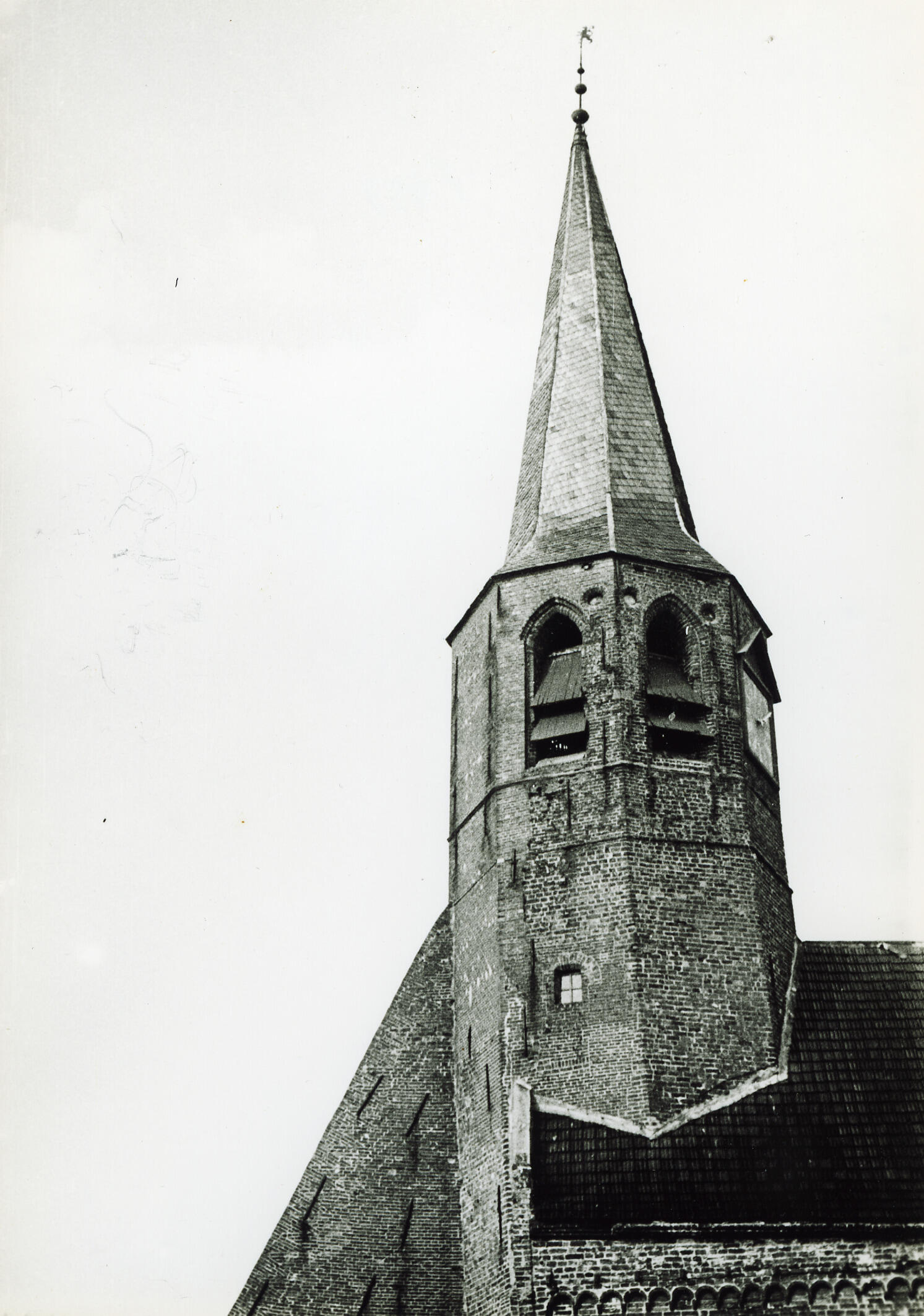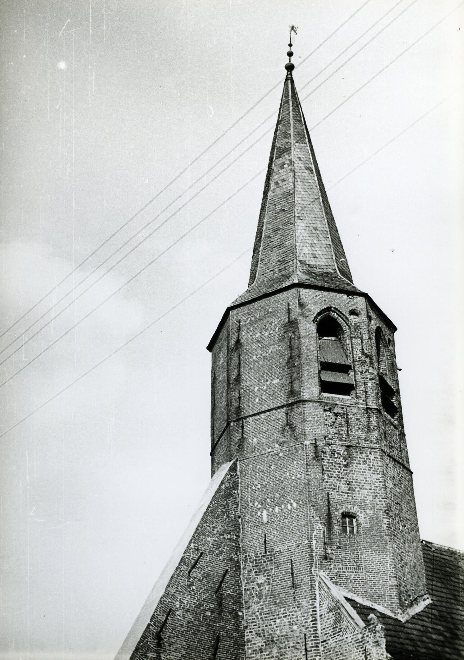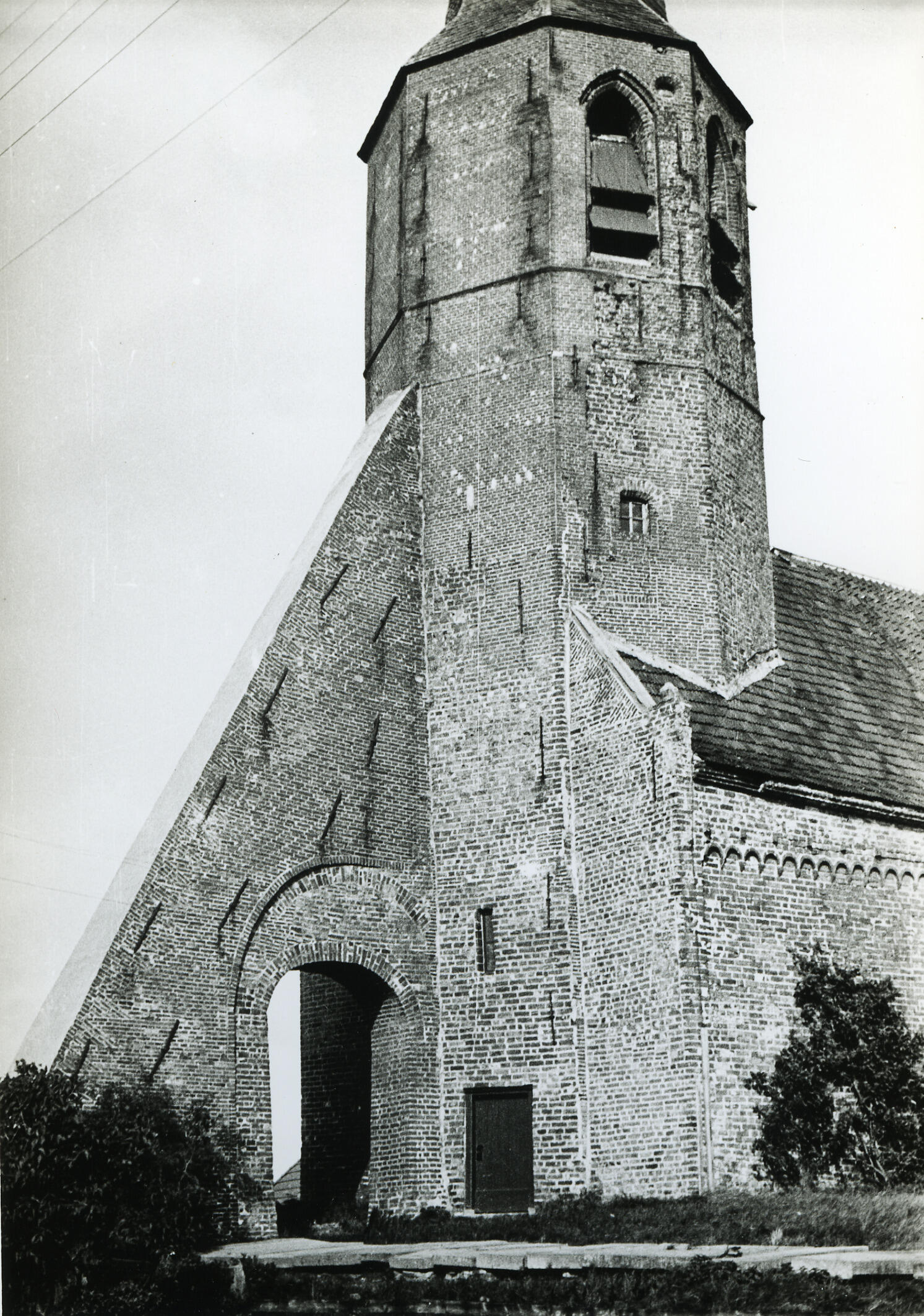 Kerktoren, Kantens, 1934 (zwart-wit foto)
