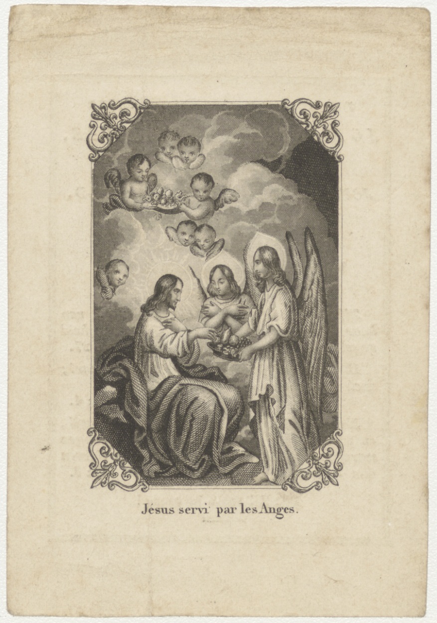 Christus wordt door engelen bediend (Frans), kz. Bid...