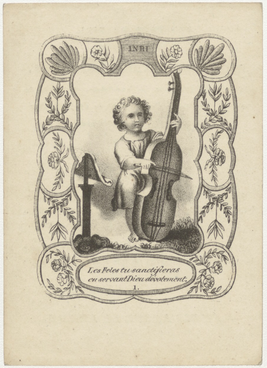 Cellospelend jongetje (Frans), kz. Bid voor ziel Hey...
