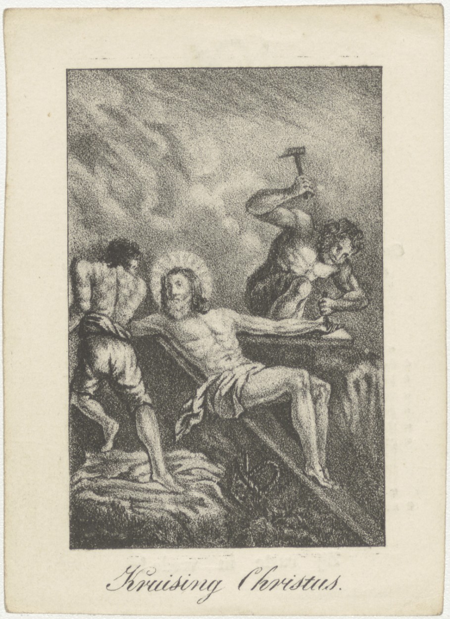 Christus wordt aan het kruis genageld, kz. Bid voor ...