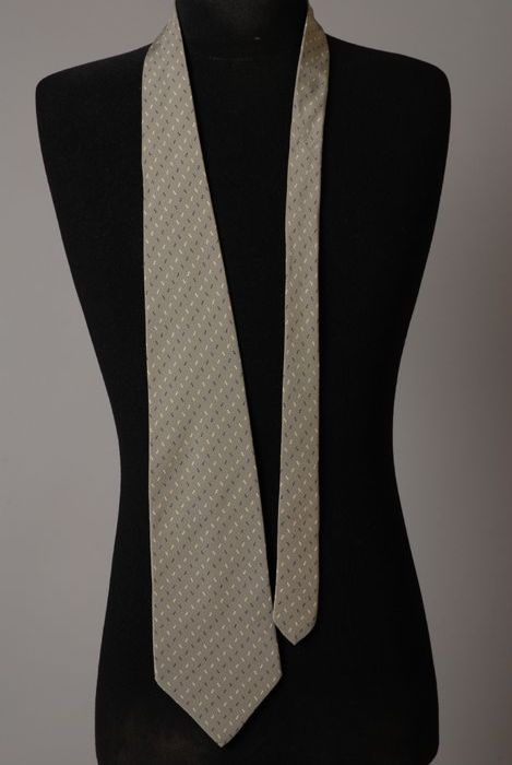 Stropdas van grijze zijde met diagonaal dessin van w...
