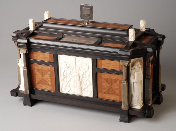 Rechthoekig oorkondenkistje, geschonken aan A. Plate...