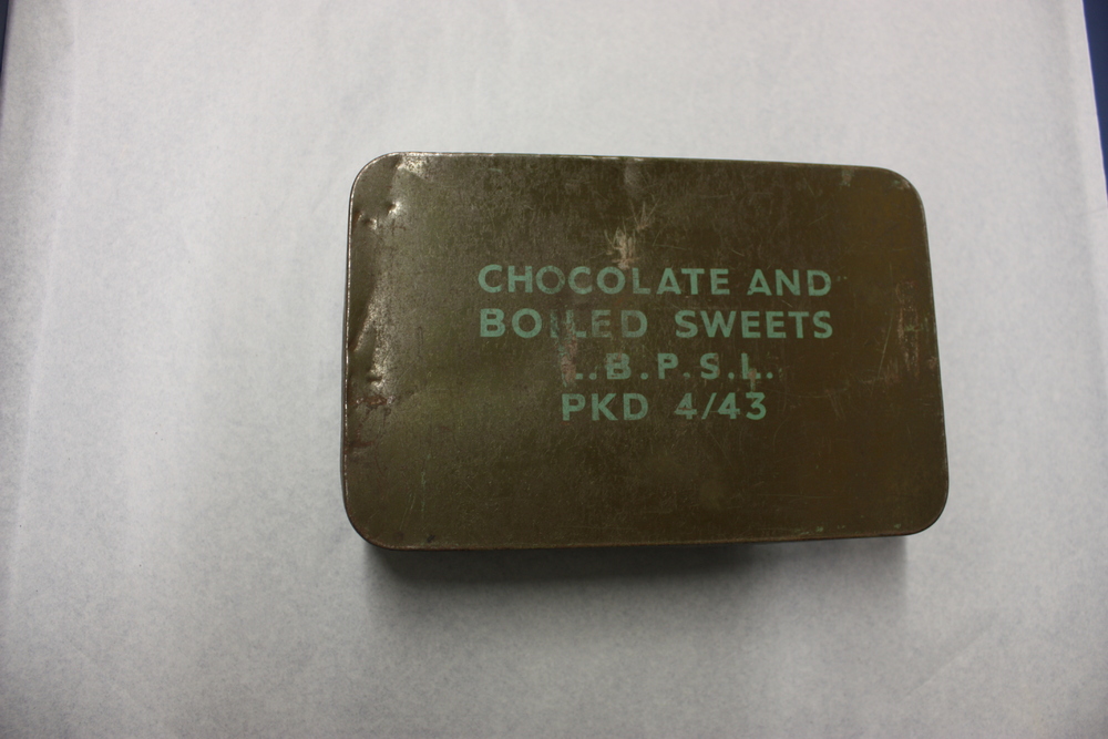 acht snoepblikken waarvan 1 met twee polshorloges