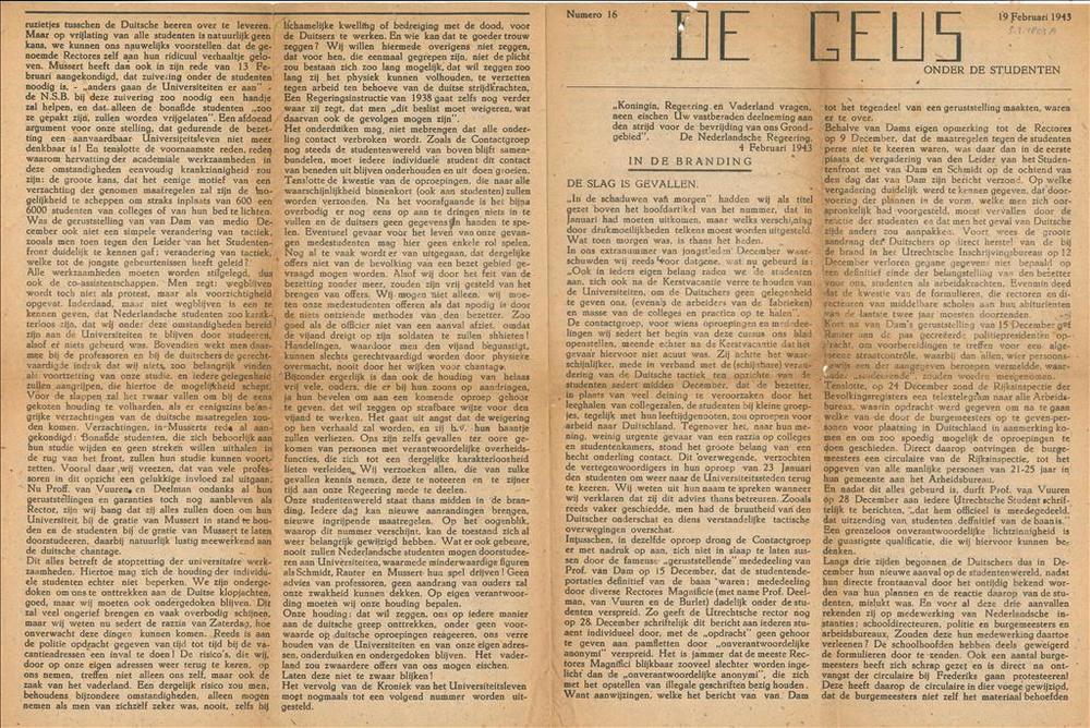De Geus onder Studenten, No 16, 19 Februari 1943.