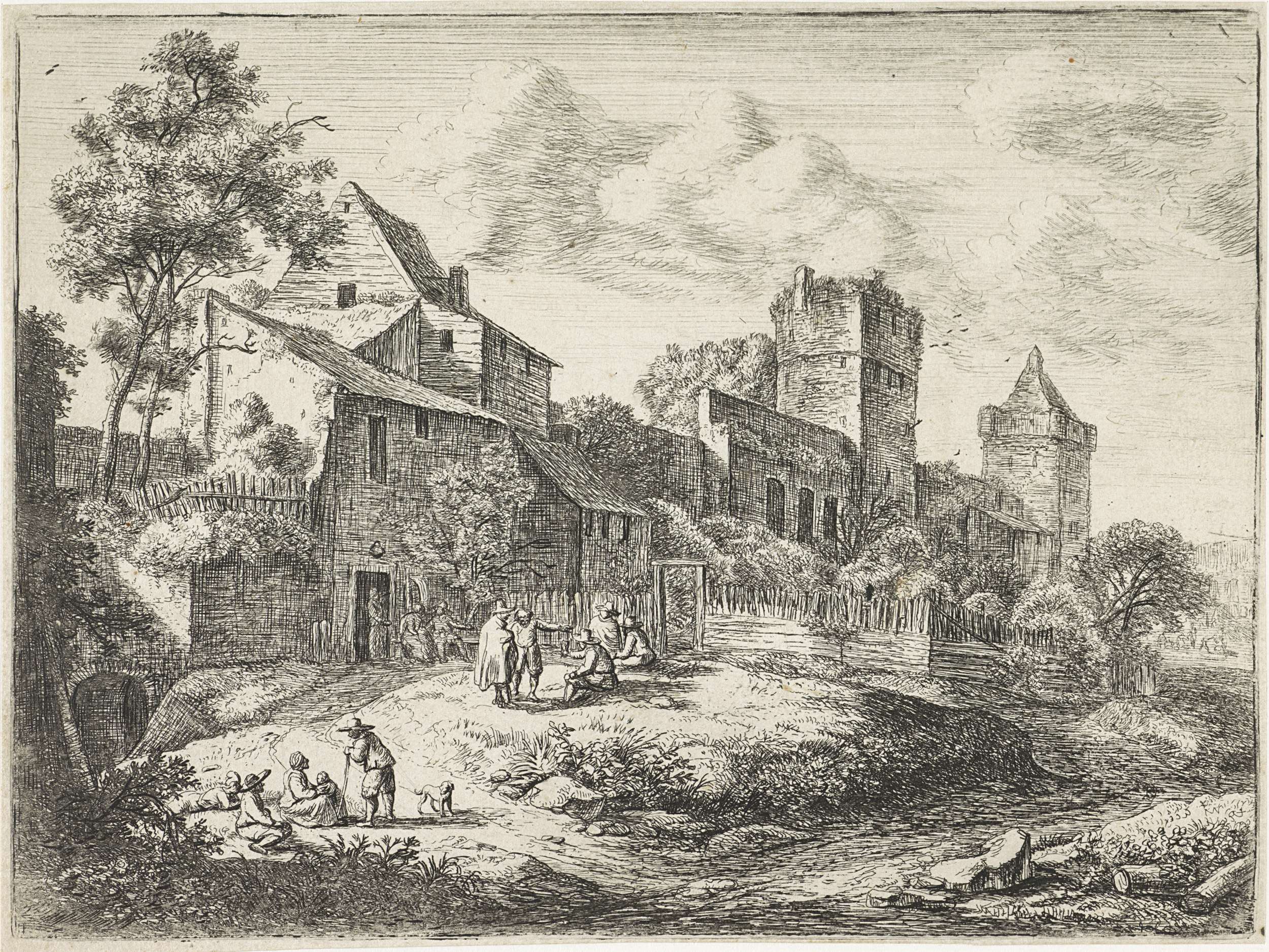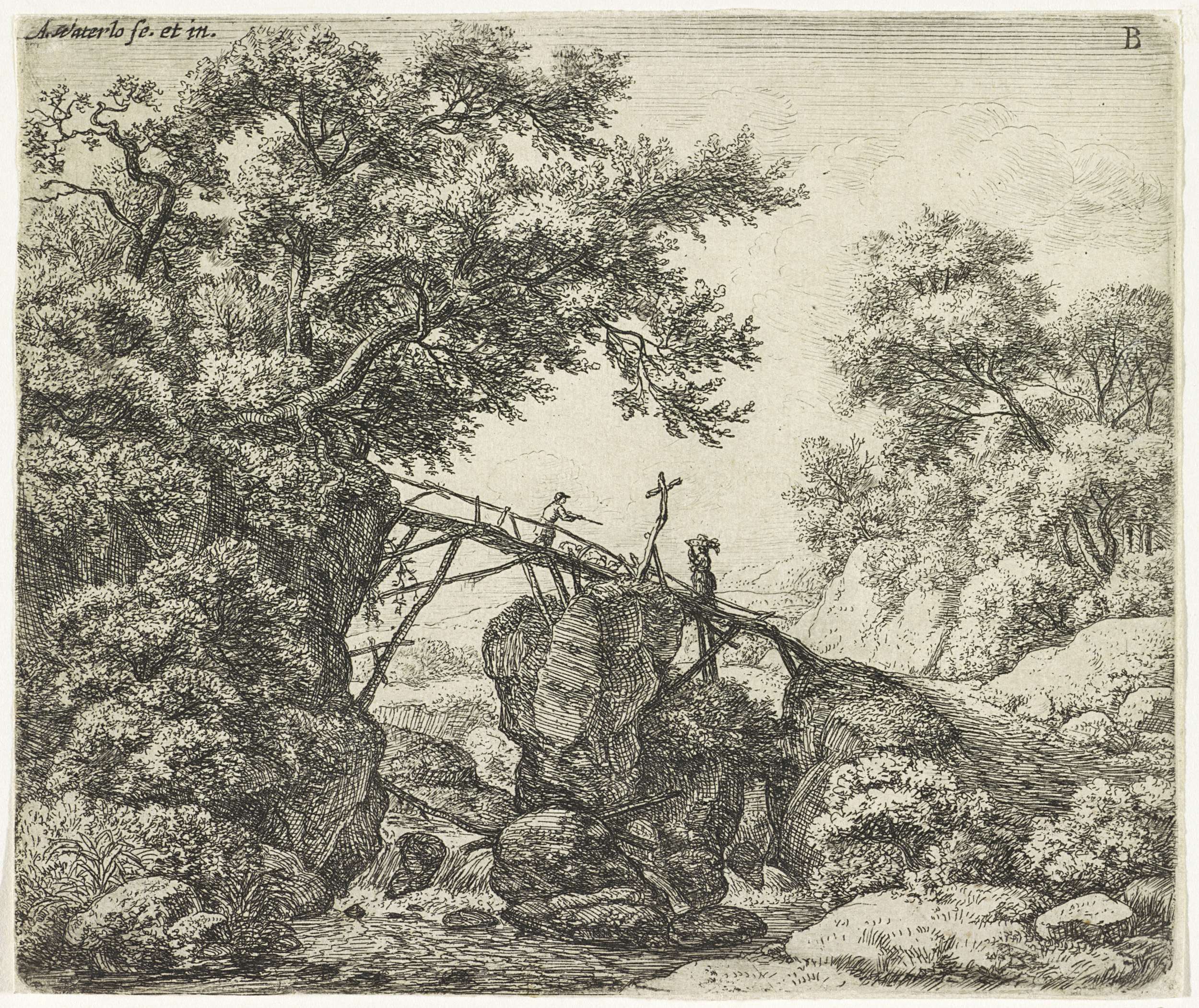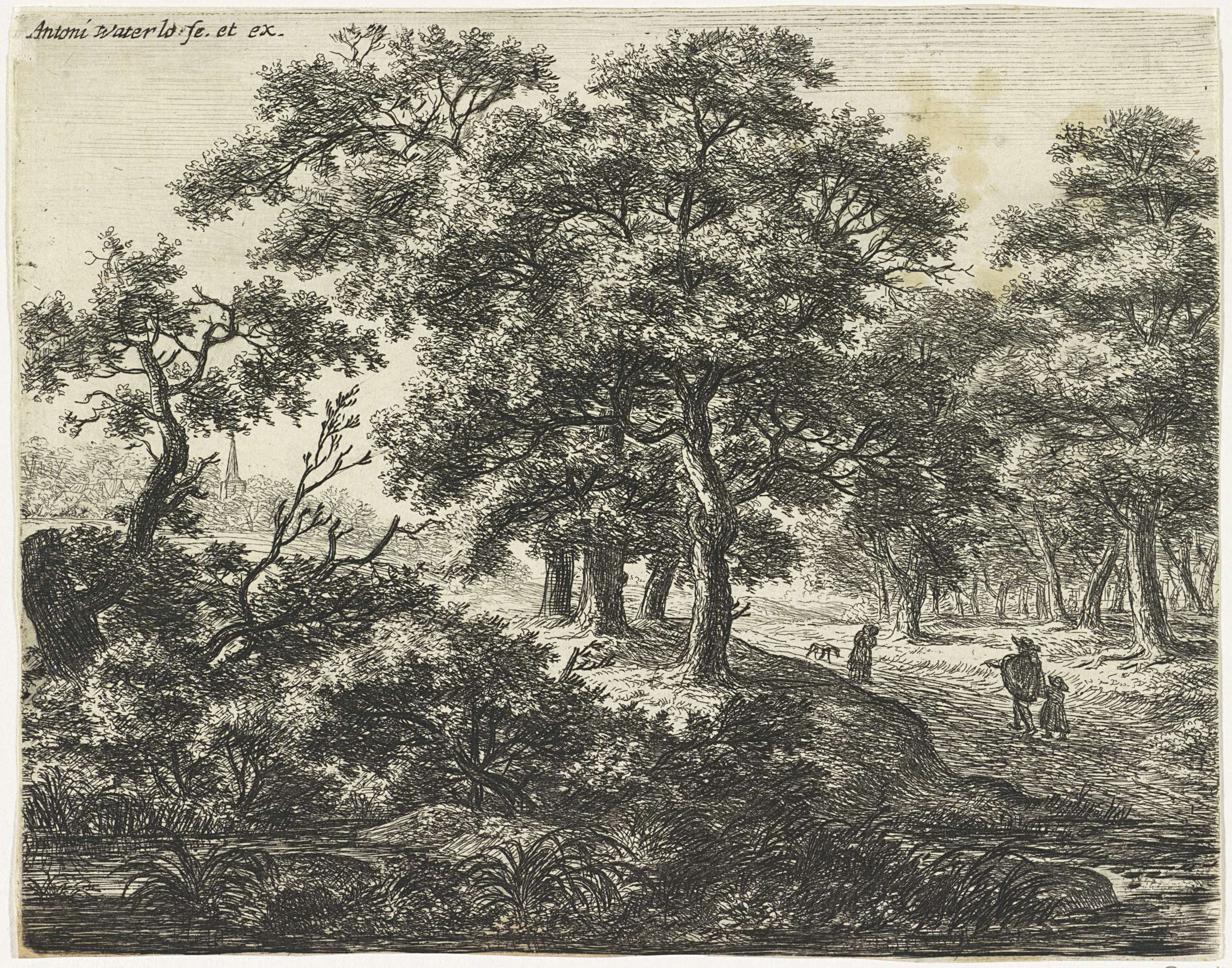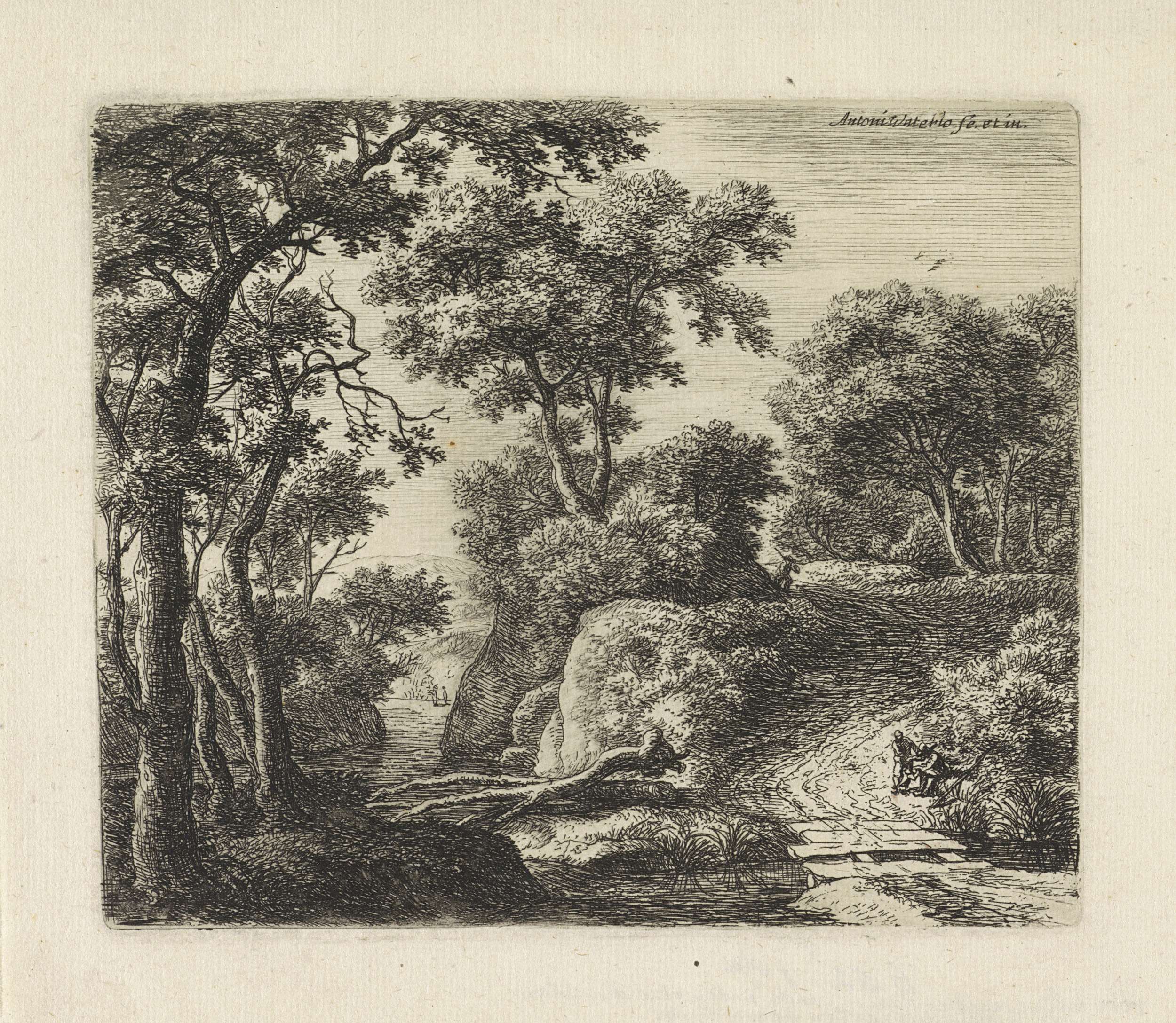 Figuren met een hond bij een beek