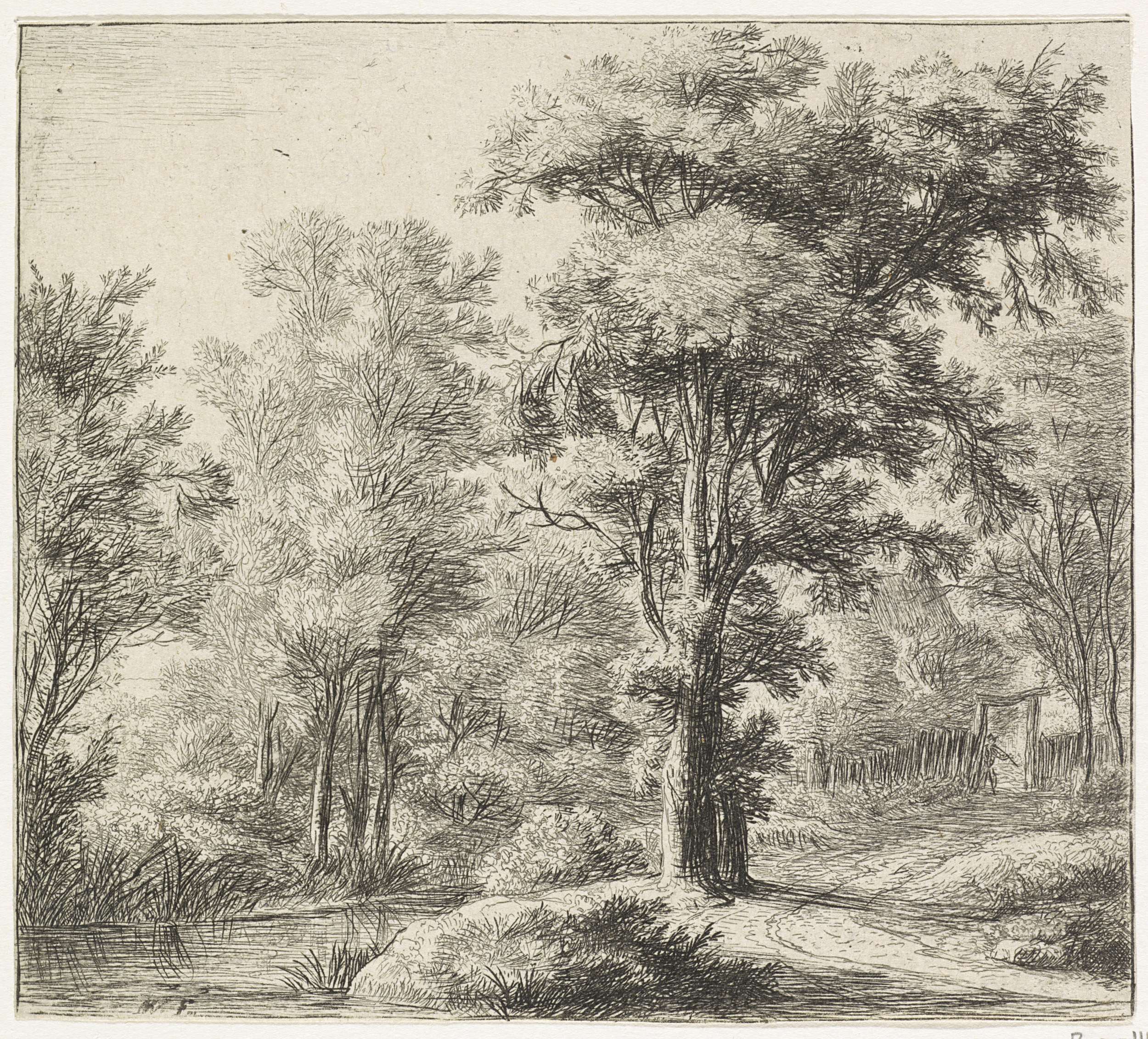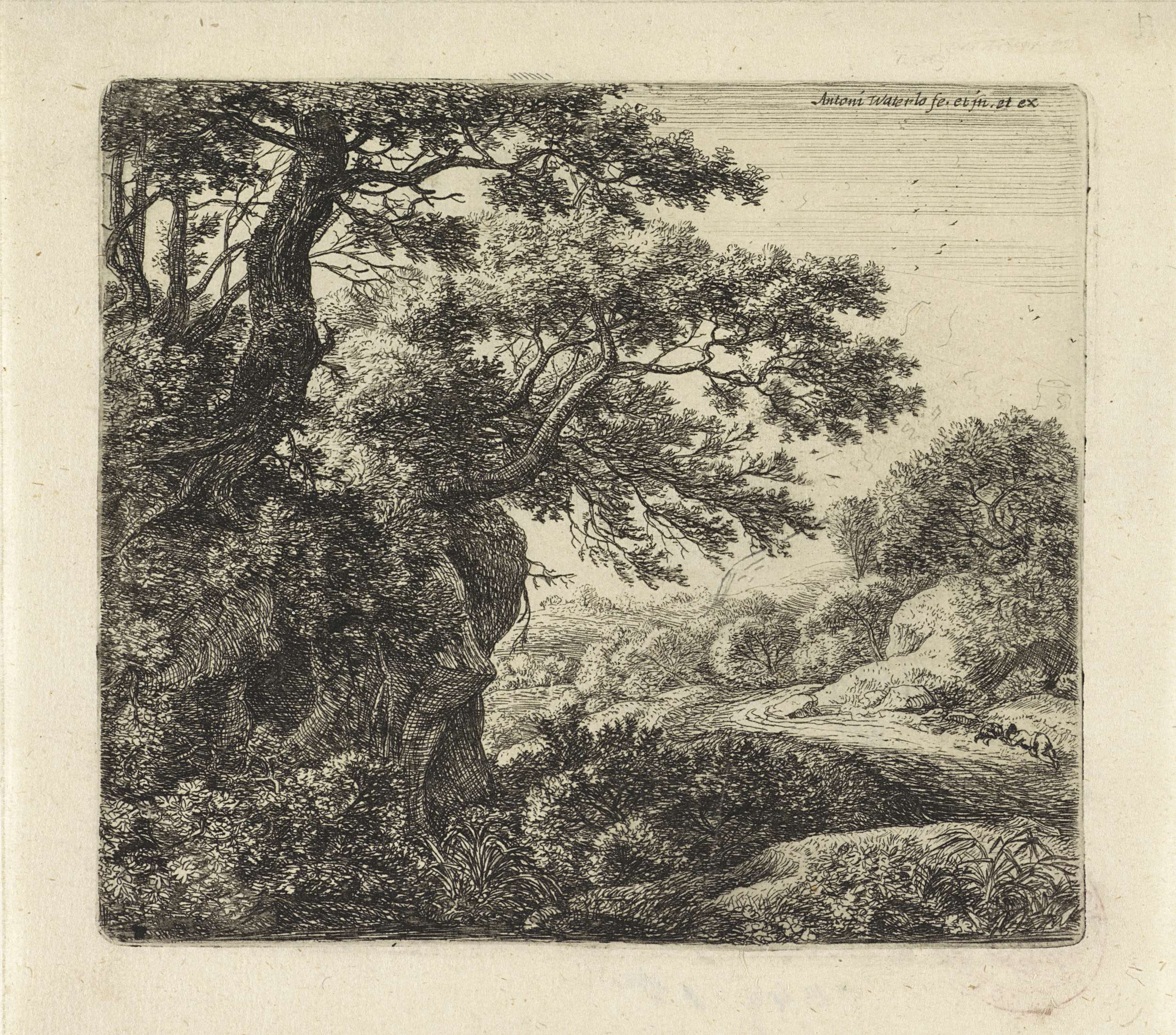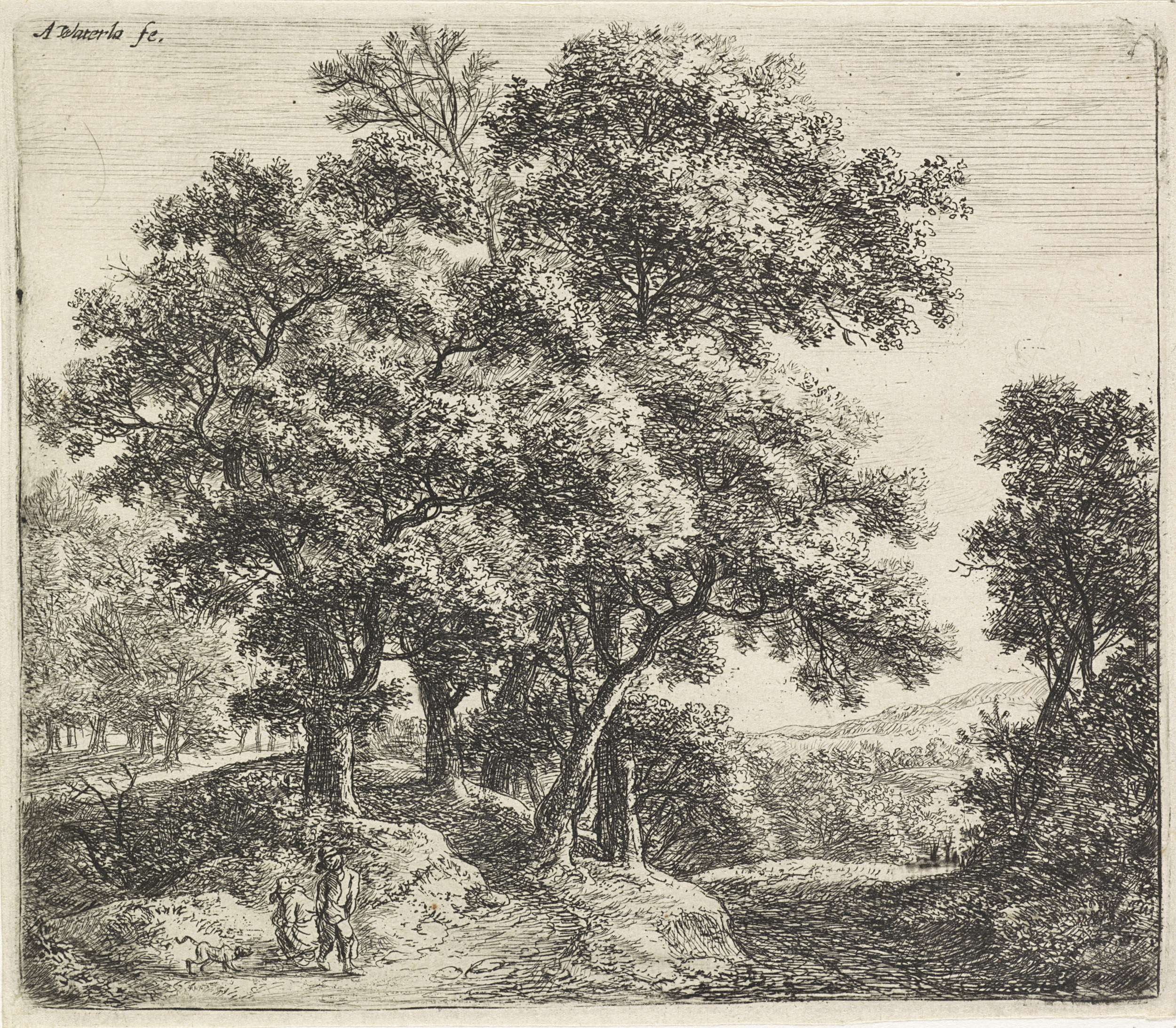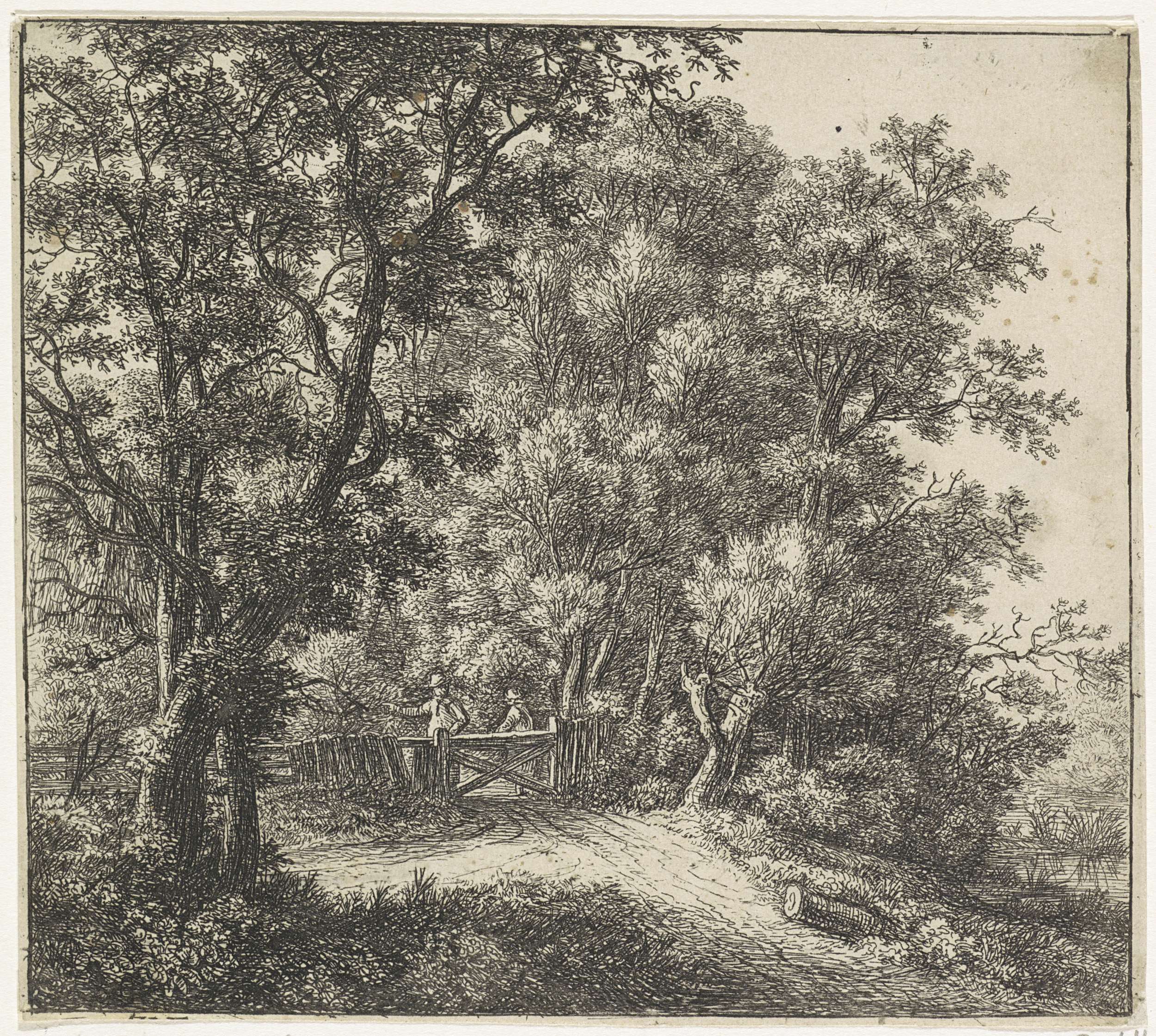 Figuren met een hond bij een beek