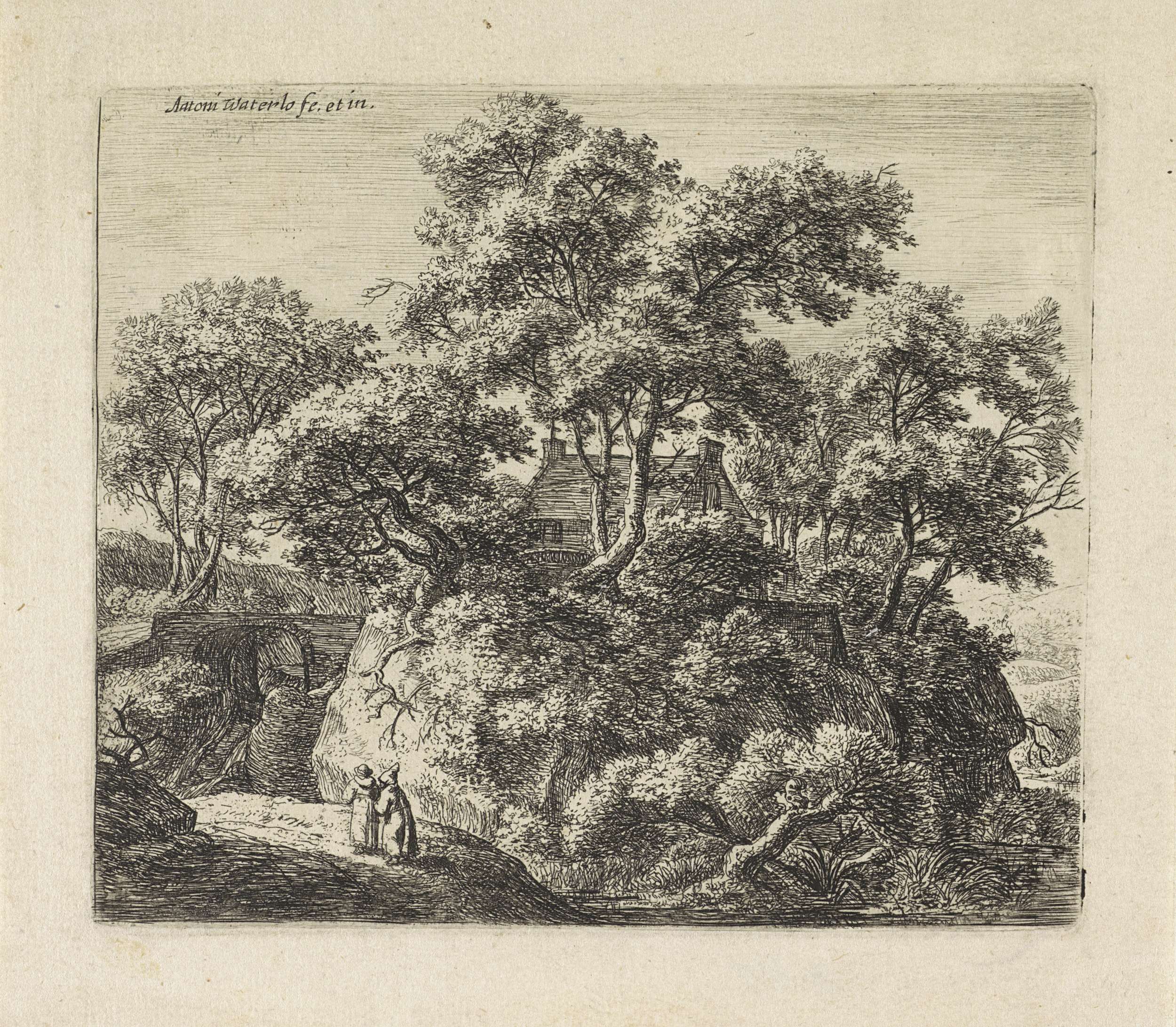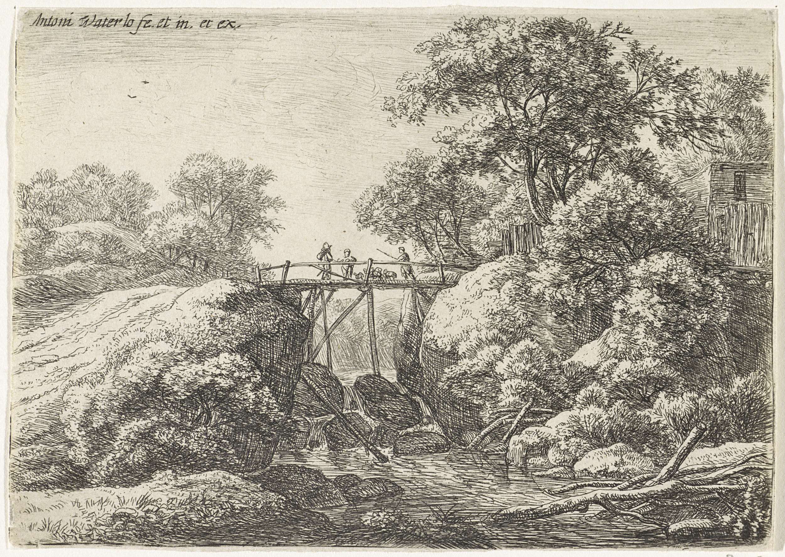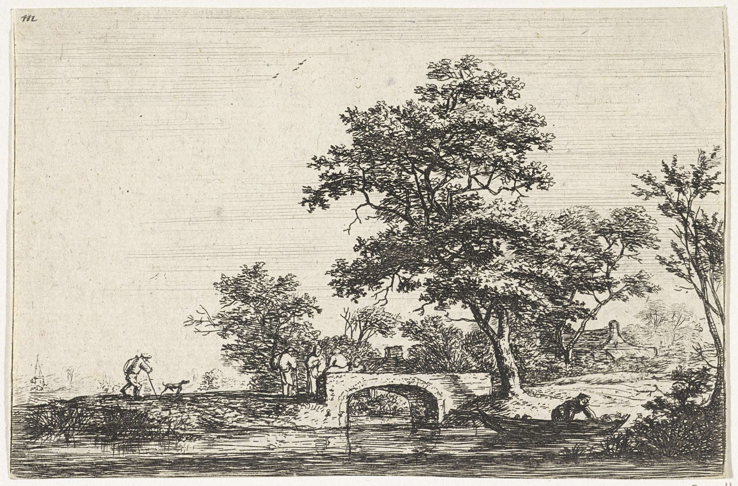 Figuren bij een stenen brug