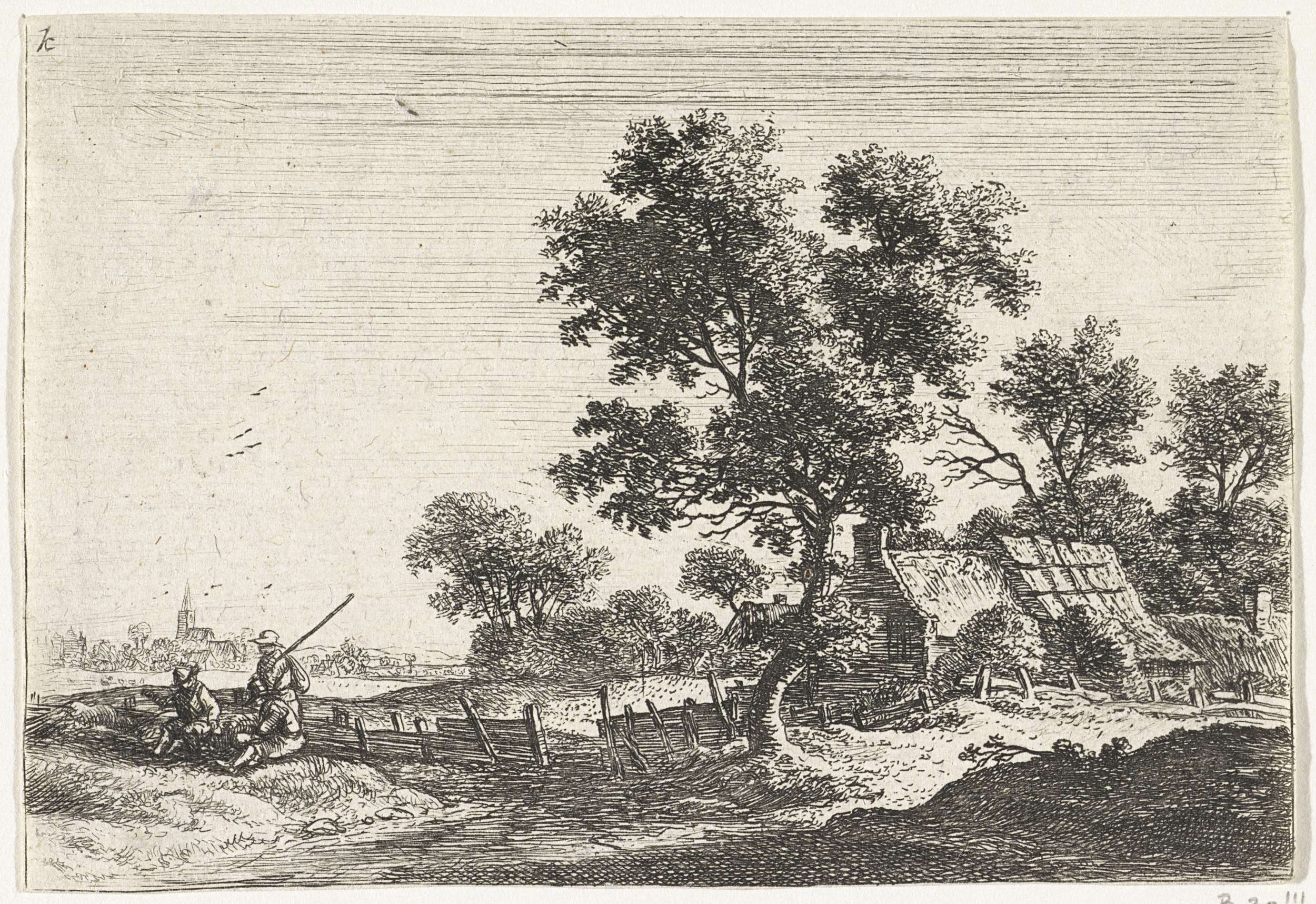 Slapende figuren in een landschap