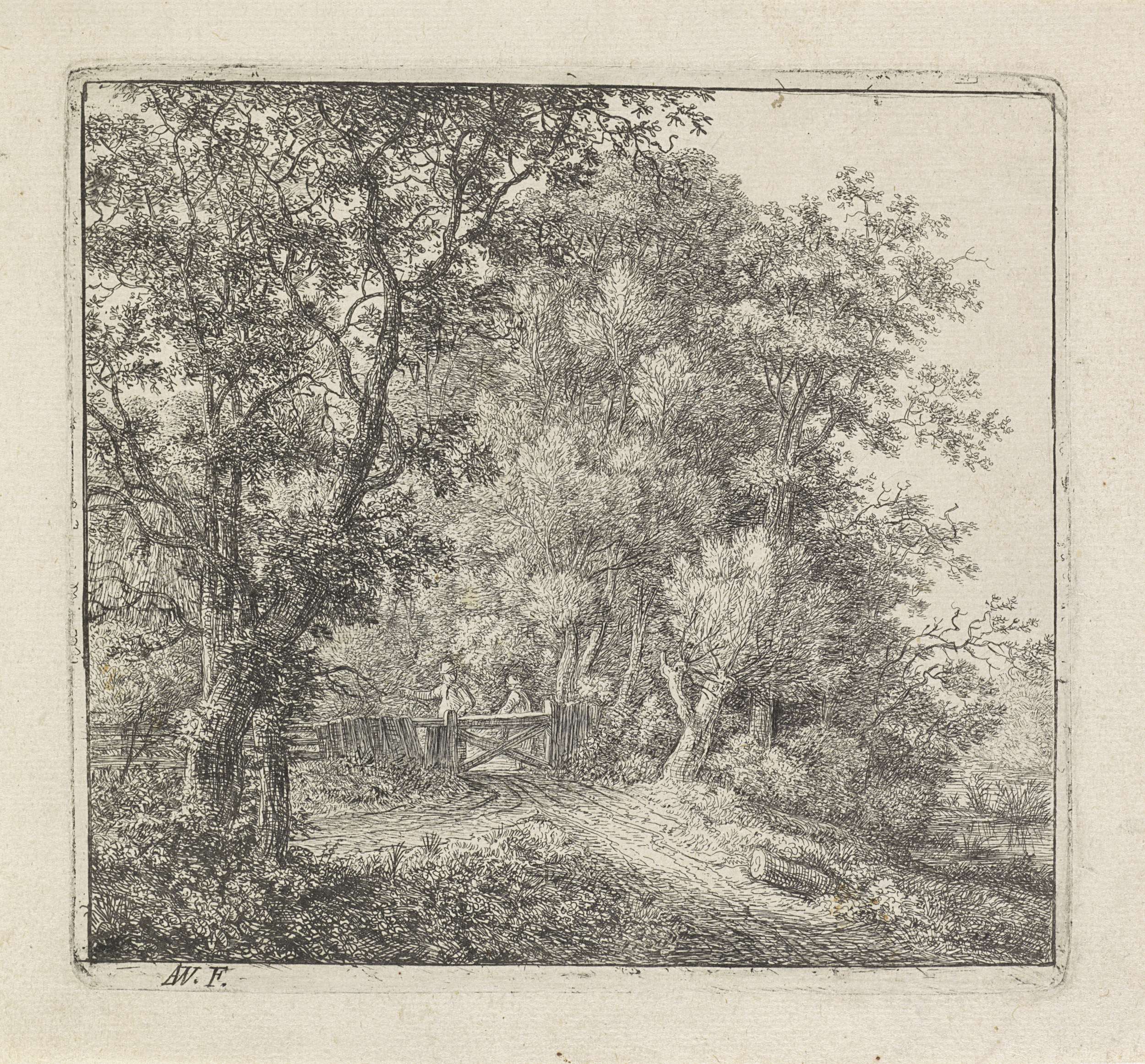 Twee figuren bij een hek