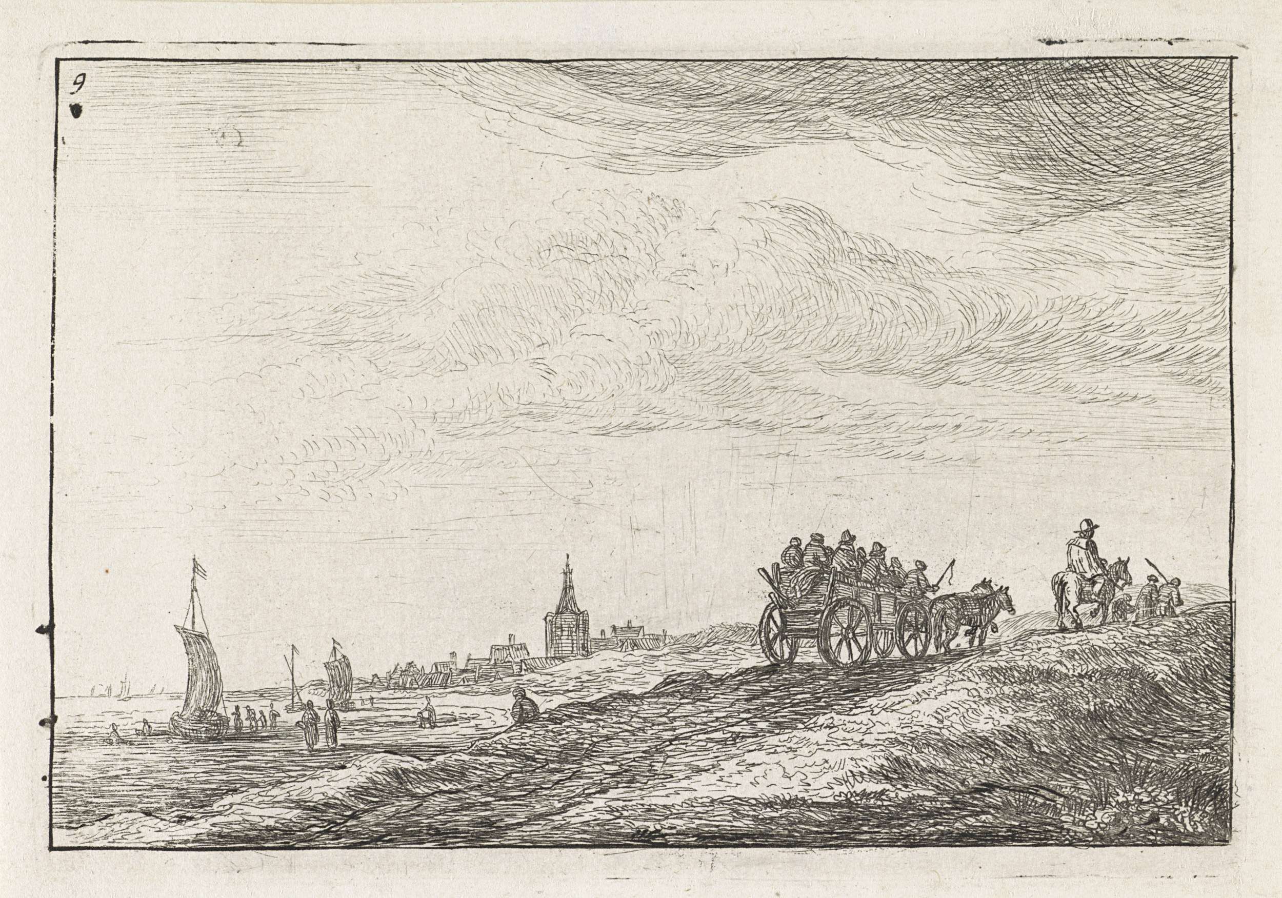 Kustlijn met paard en wagen