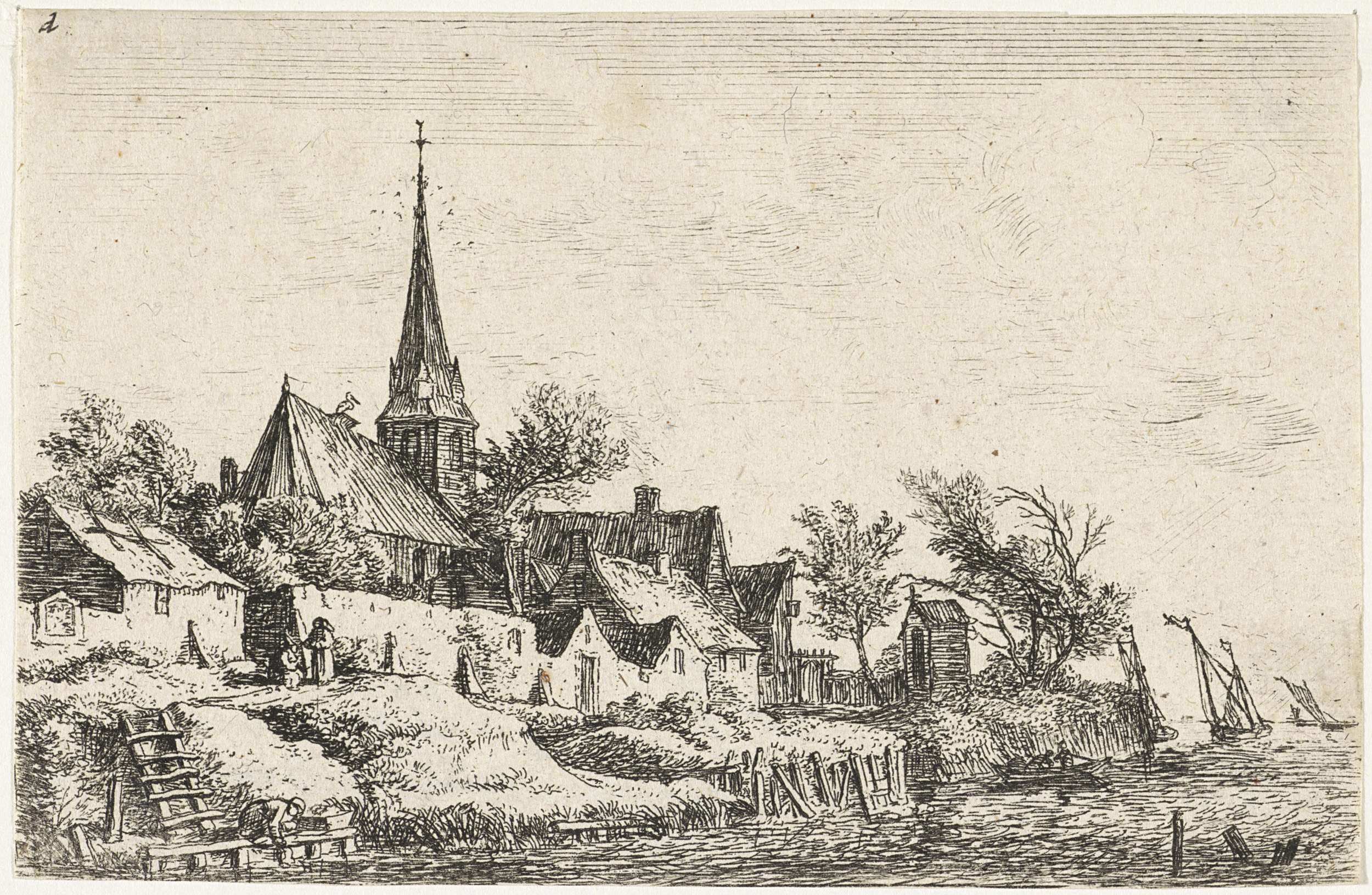 Dorpsgezicht met een kerk