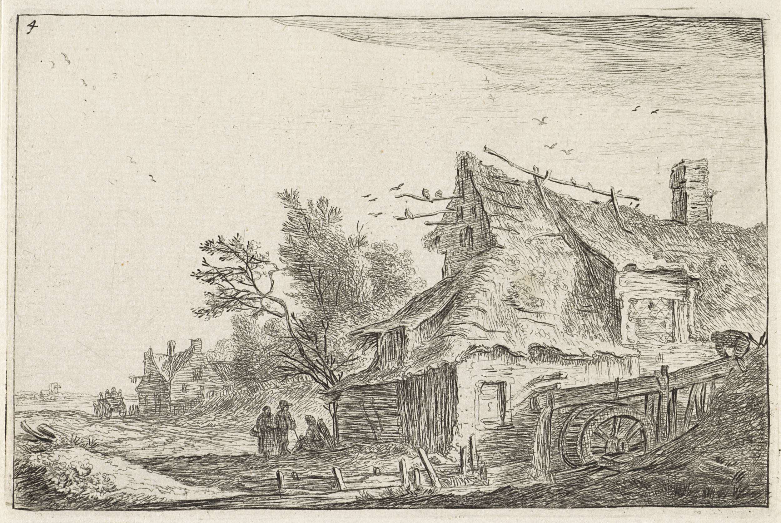 Vier figuren op een verhoging in een landschap