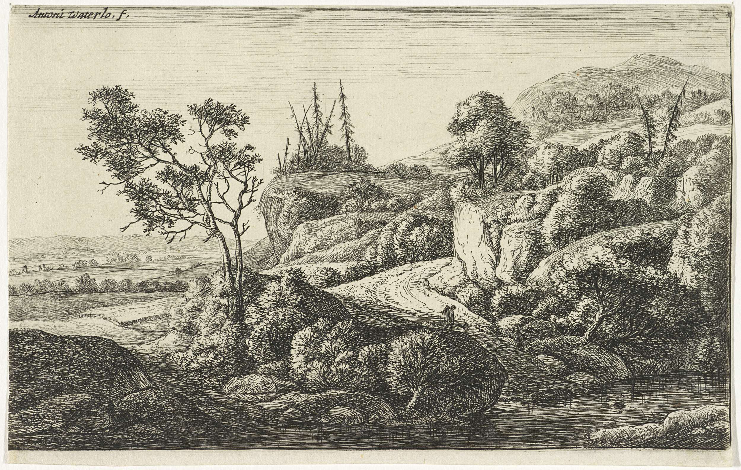 Landschap met rotsen en een waterpartij