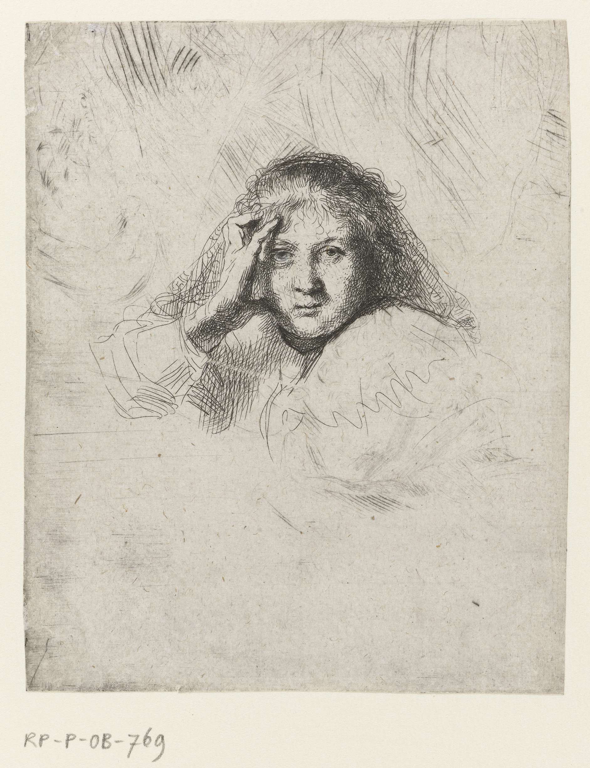 Sick woman with a large white headdress (Saskia)