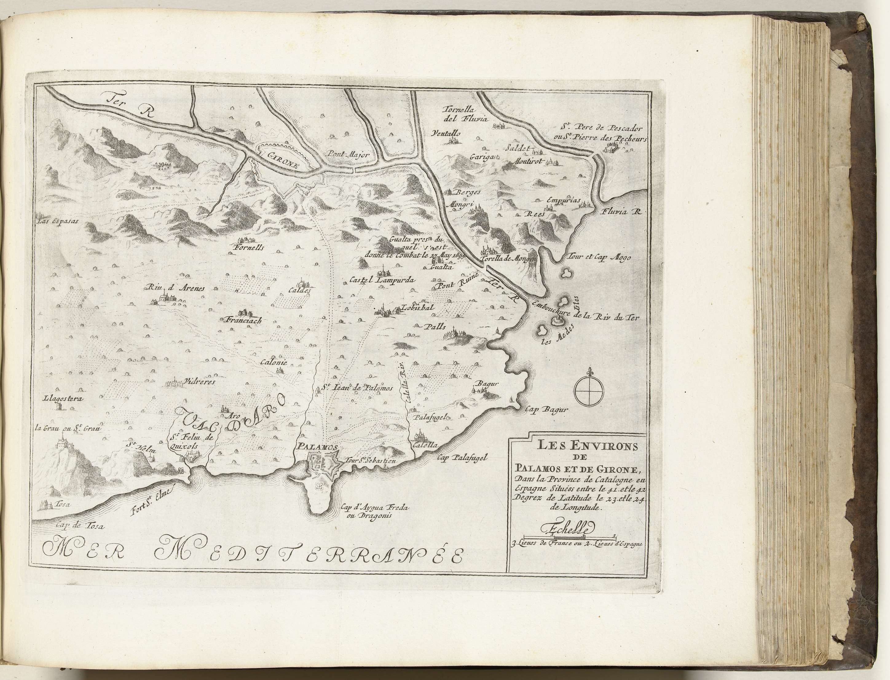 Kaart de omgeving van Palamos en Gerona, ca. 1693-1696