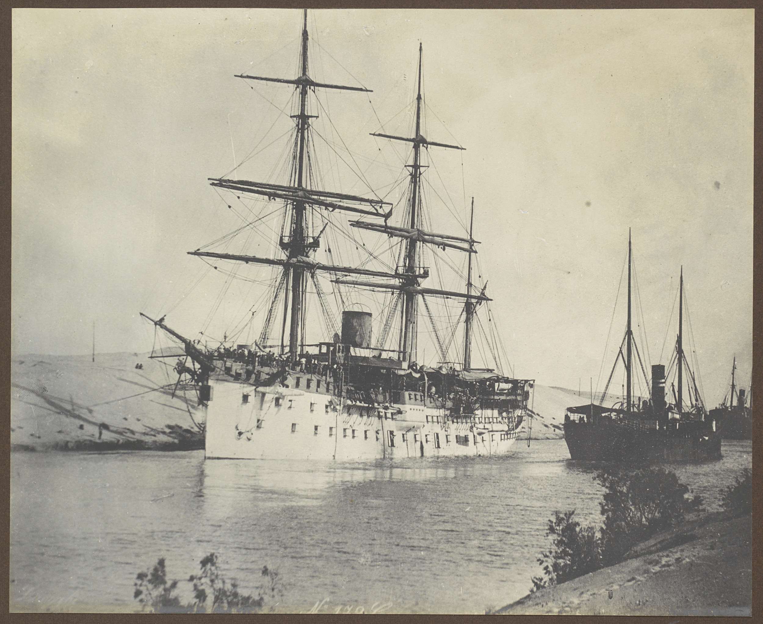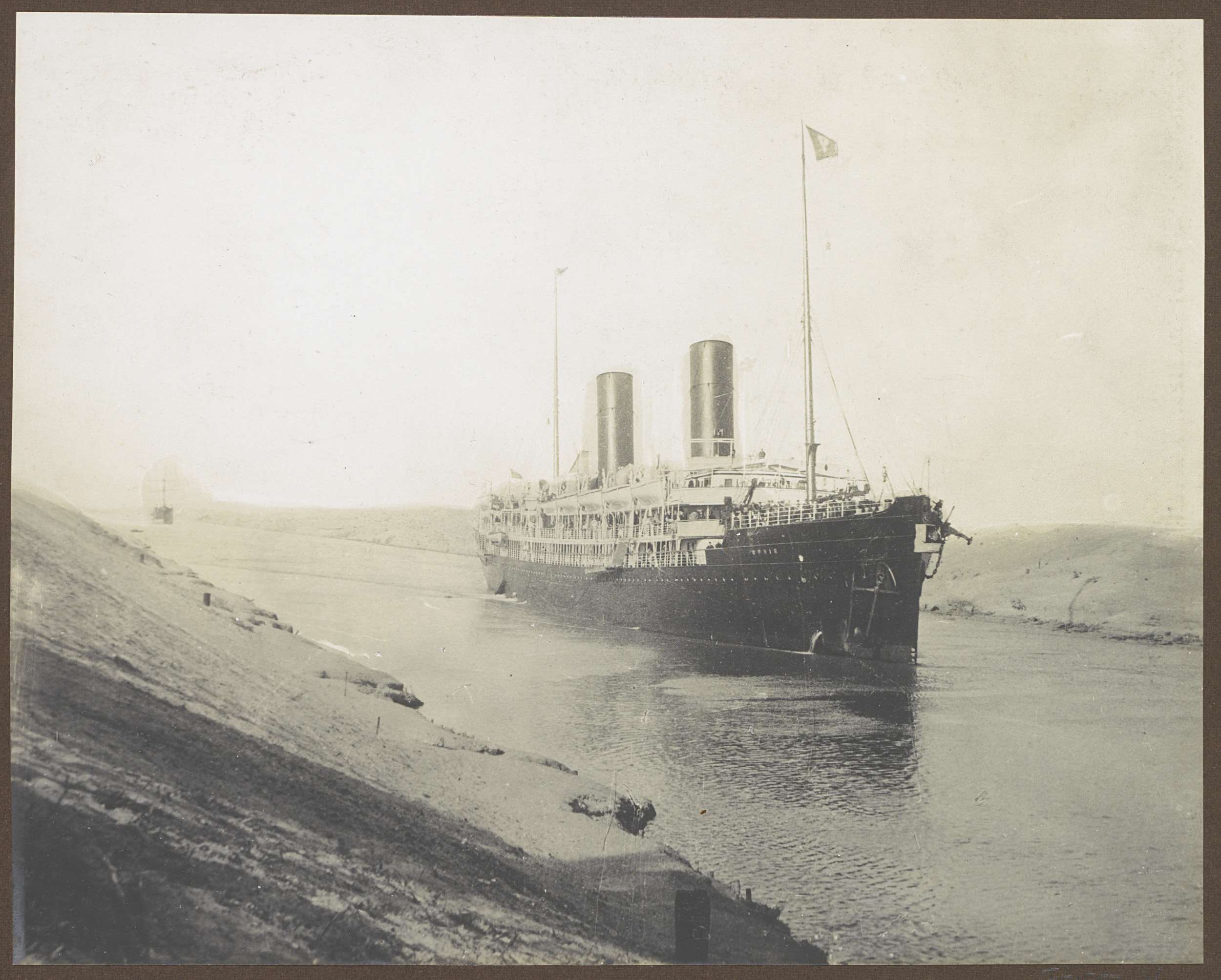 Passagiersschip 'Ophir' vaart door het Suezkanaal