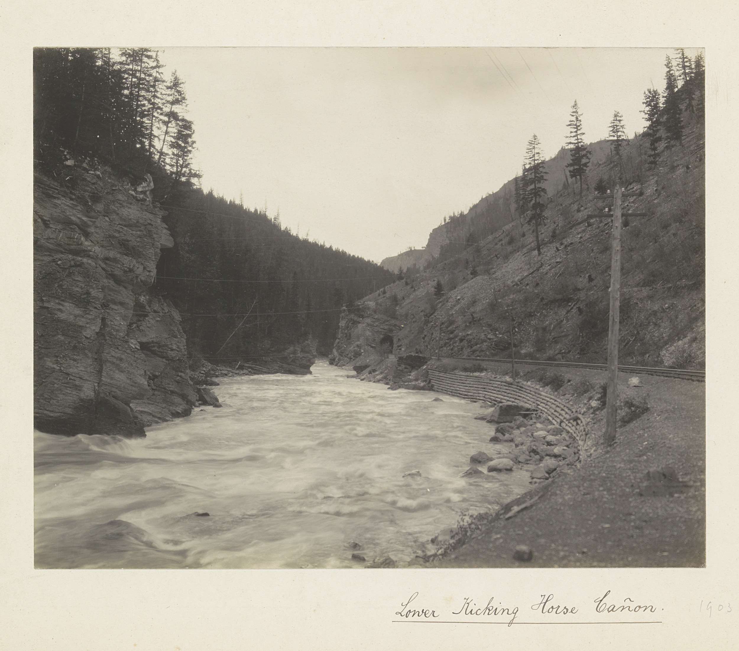 Gezicht op Kicking Horse Canyon in Canada, stroomafw...