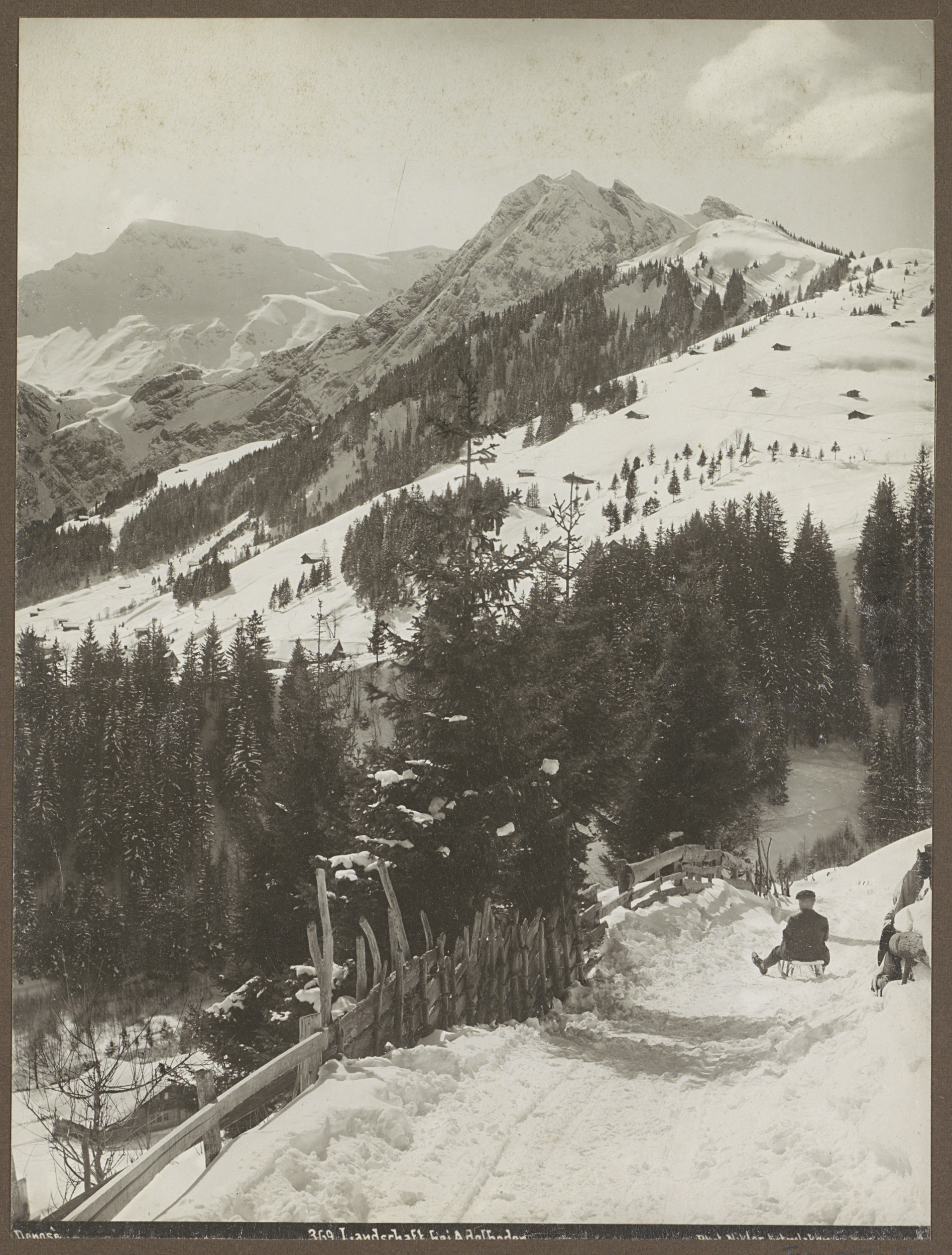 Gezicht op de besneeuwde berghellingen van Adelboden...