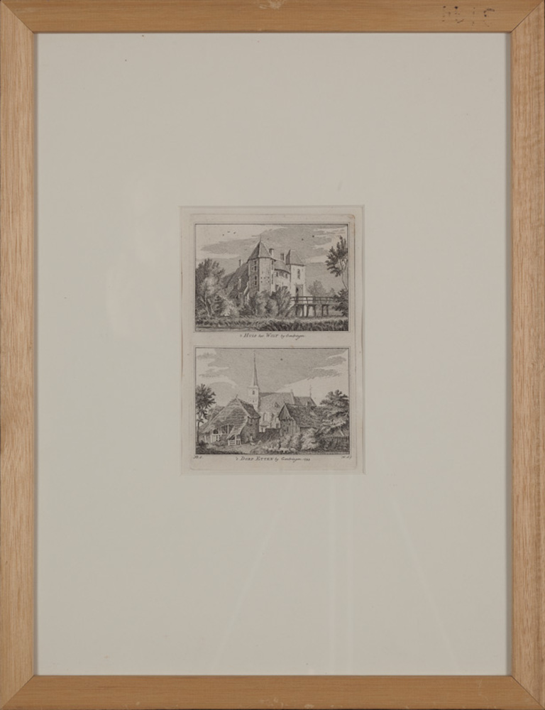 Reproductie van een kerk en huizen, Het Dolhuys, lep...