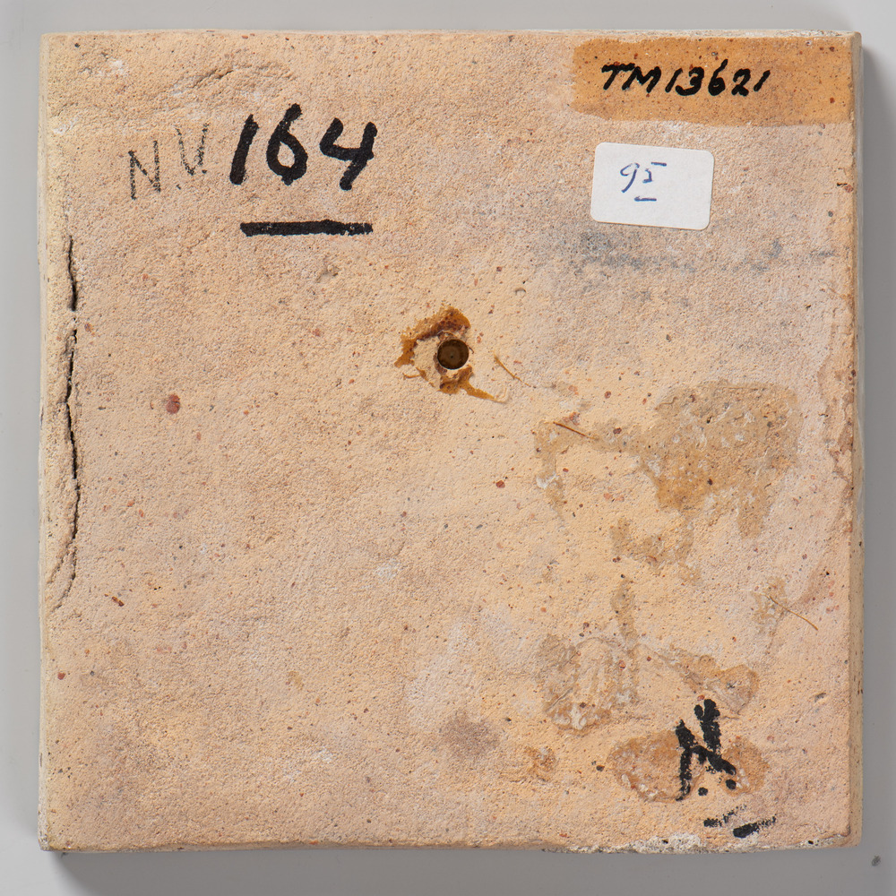tegel van keramiek met tinglazuur, voorstellende: la...