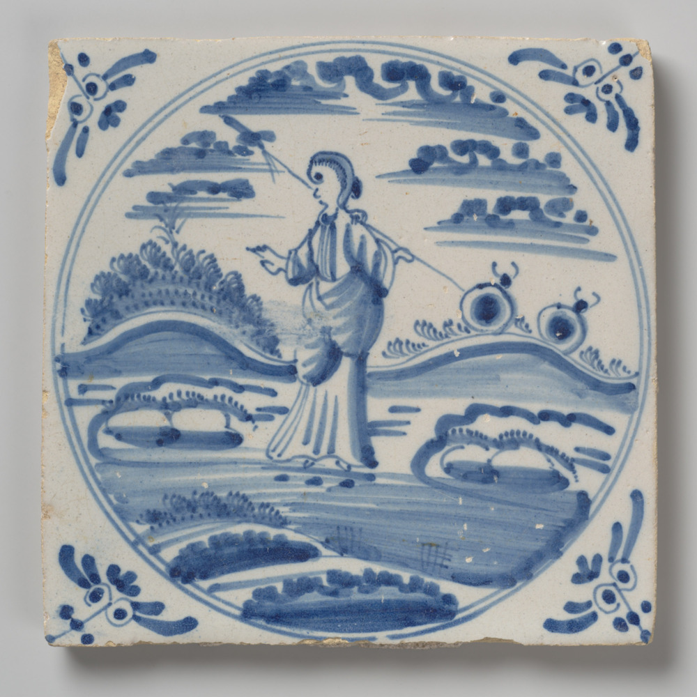tegel van aardewerk met tinglazuur, voorstellende: h...