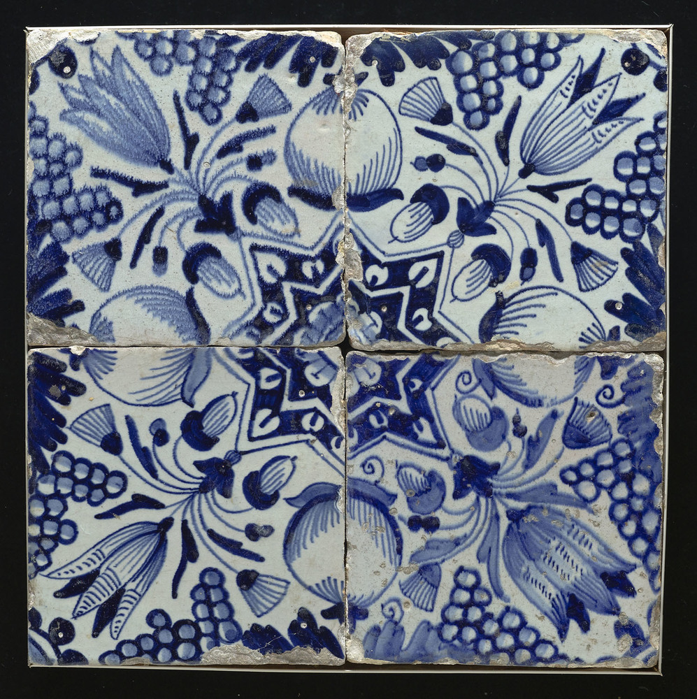 Tegelveld bestaande uit vier tegels van keramiek met...