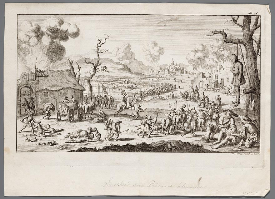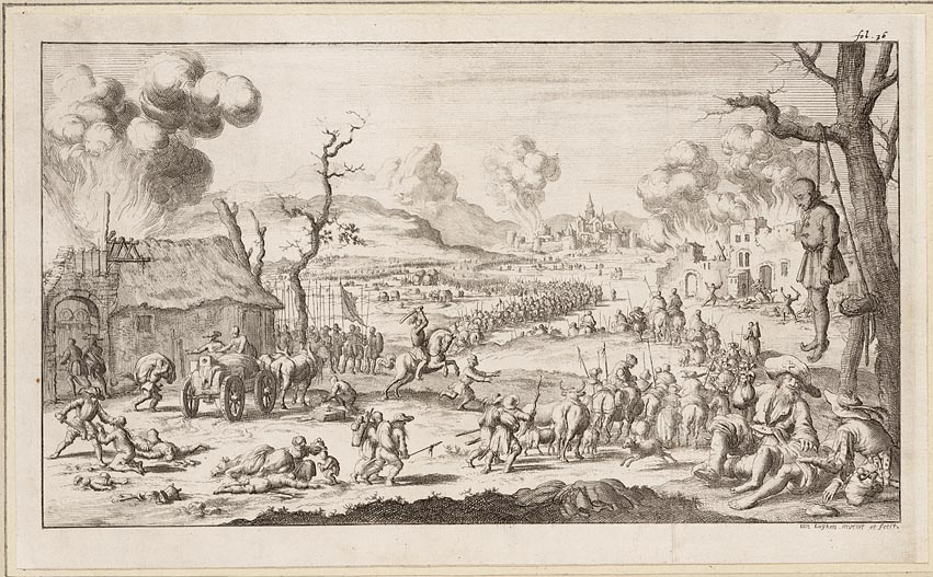 Een boerderij brandt, een man hangt aan een boom, wr...