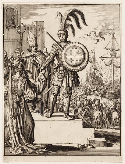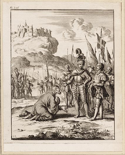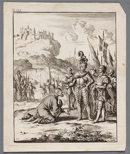 Isaac, koning van Cyprus, ligt geknield voor Richard...
