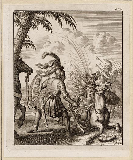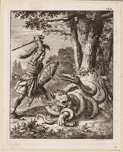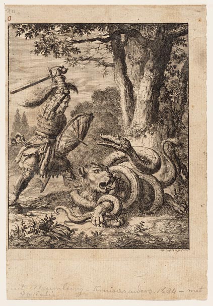 Godfried van Bouillon verlost een leeuw van een reuz...