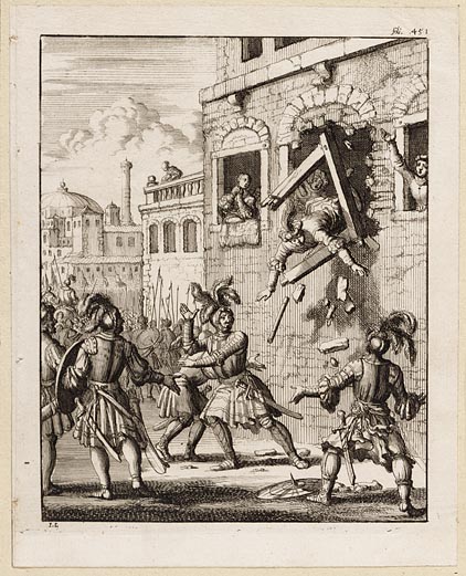 Hendrik, graaf van Champagne, stort omlaag door het ...
