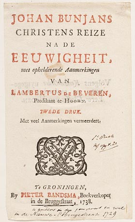 Titelpagina "Eens Christens reize naar de eeuwigheid"