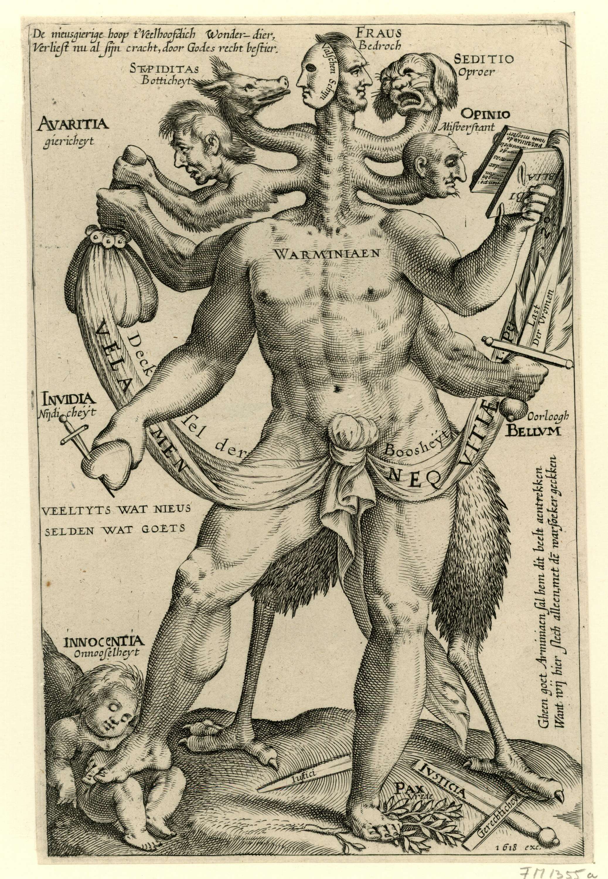 Spotprent met Johan en Cornelis de Witt die als duiv...