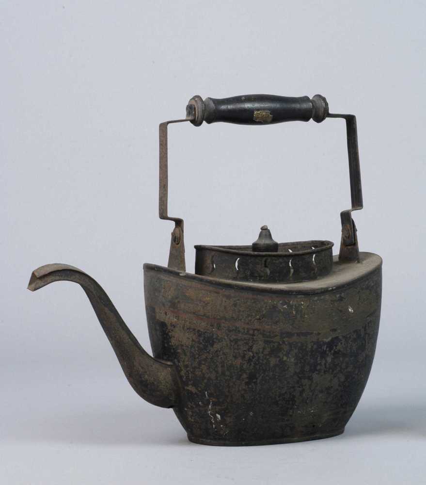 ketel van ijzer - ovaal - met houten handvat, 19e eeuw