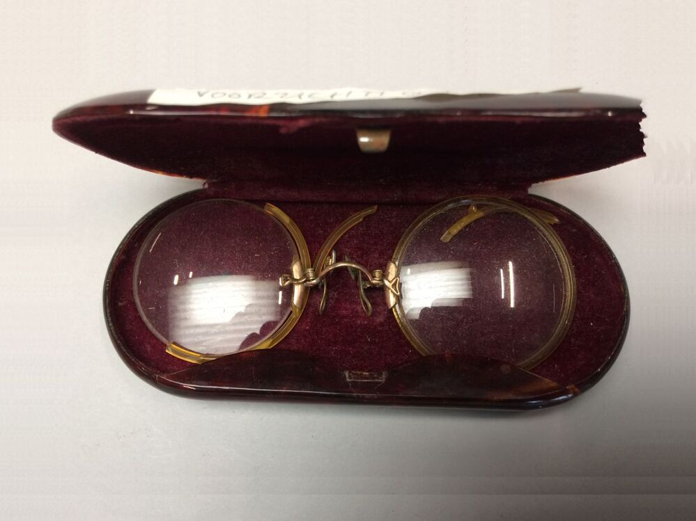 Knijpbril met ronde glazen en gouden neusbrug met ce...
