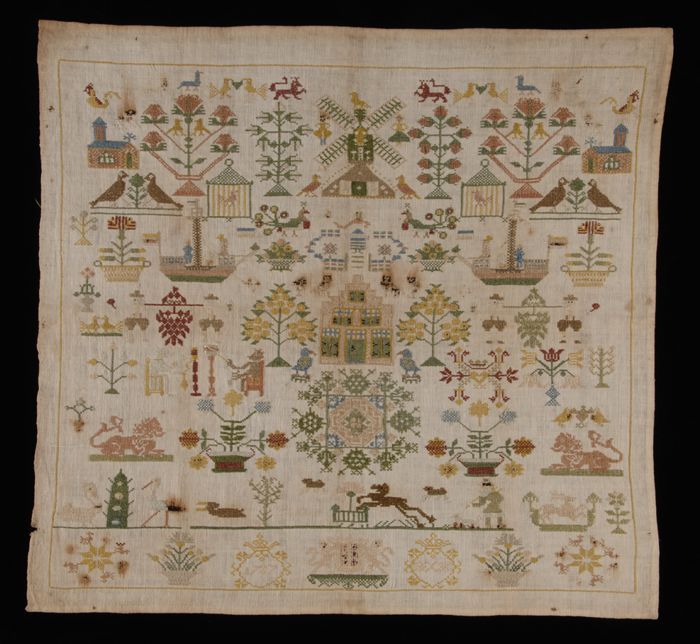 Merklap gewerkt in kruissteek in gekleurd zijde op w...